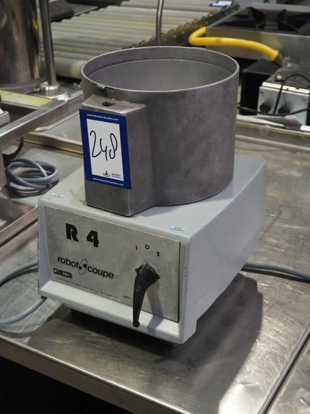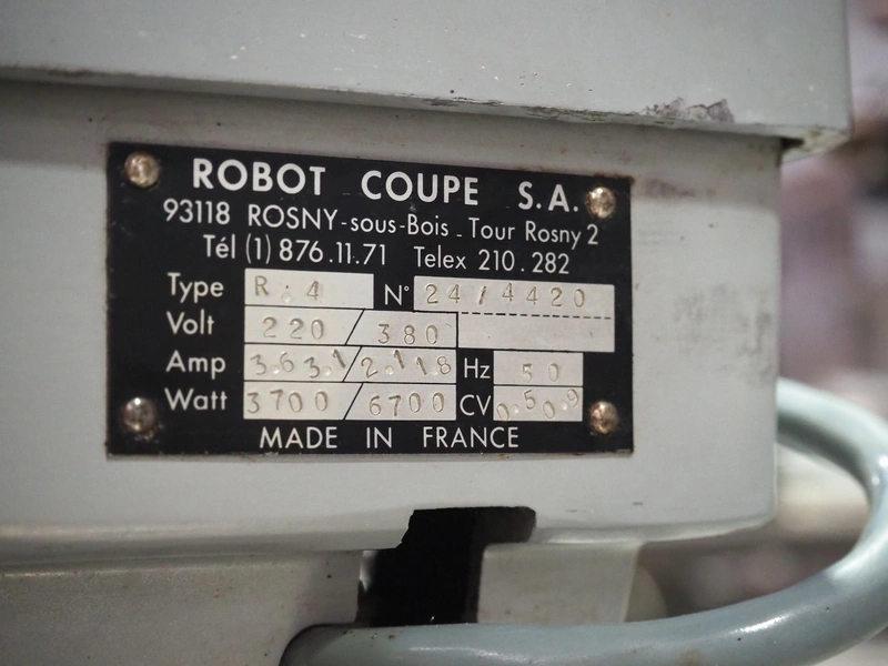 Robot Coupe mixer, type: R.4, number: 24/4420, 220/380 V, 50 Hz, 3.6-3.1 / 2.1-1 A, 3700/6700 W, dimensions: 270 mm x 330 mm x 370 mm.