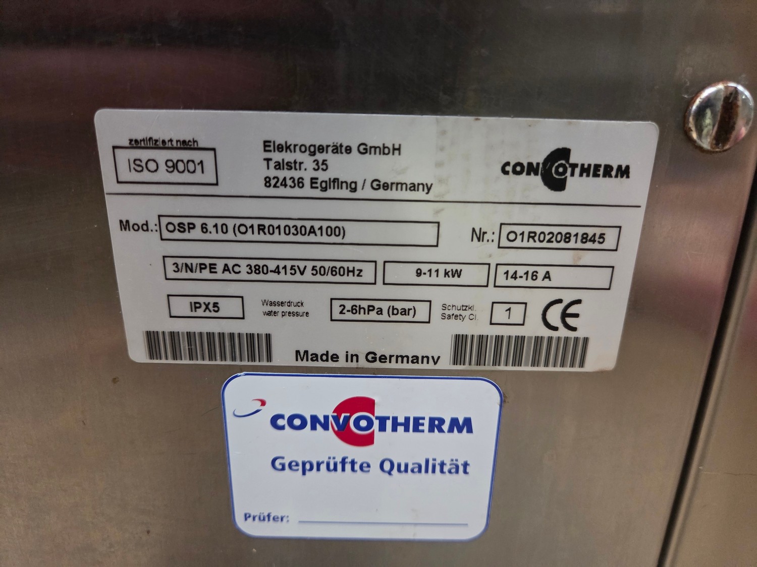 Convotherm combi steamer, type: OSP 6.10, number: O1R02081845, 380-415 V, 3 Ph, 50/60 Hz, 9-11 kW, 14-16 A, 6 floors, dimensions: 1130 mm x 900 mm x 1560 mm.