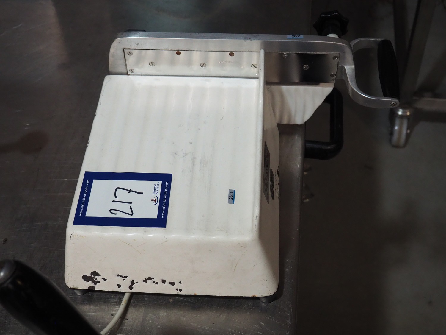 Rewebo cheese slicer, model: 8H, number: AB 915500036-1, 220-380 V, working width: 200 mm, total dimensions: 360 mm x 390 mm x 160 mm.