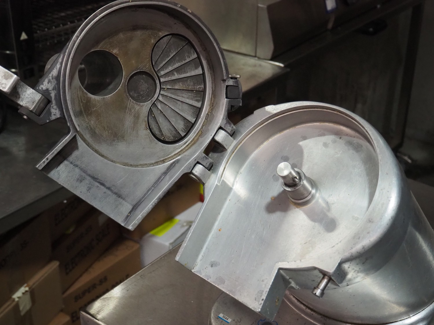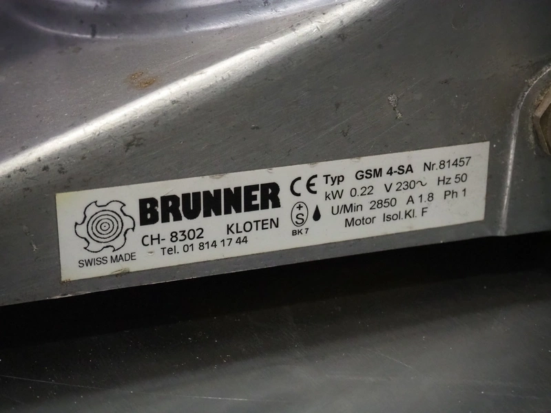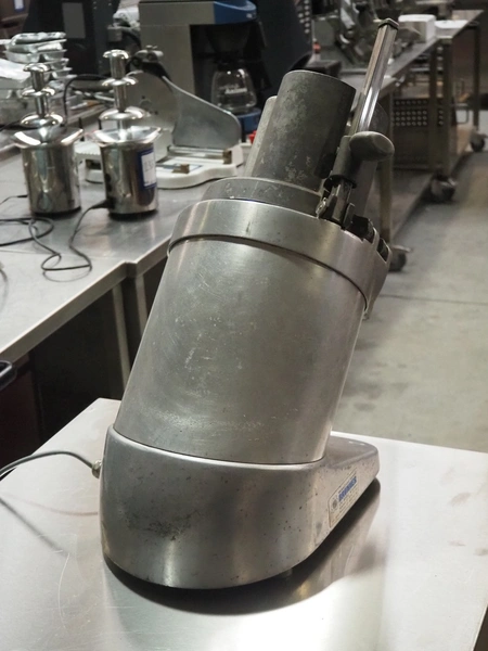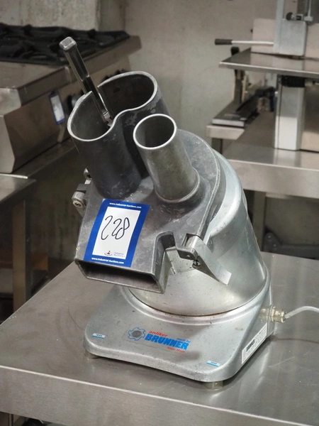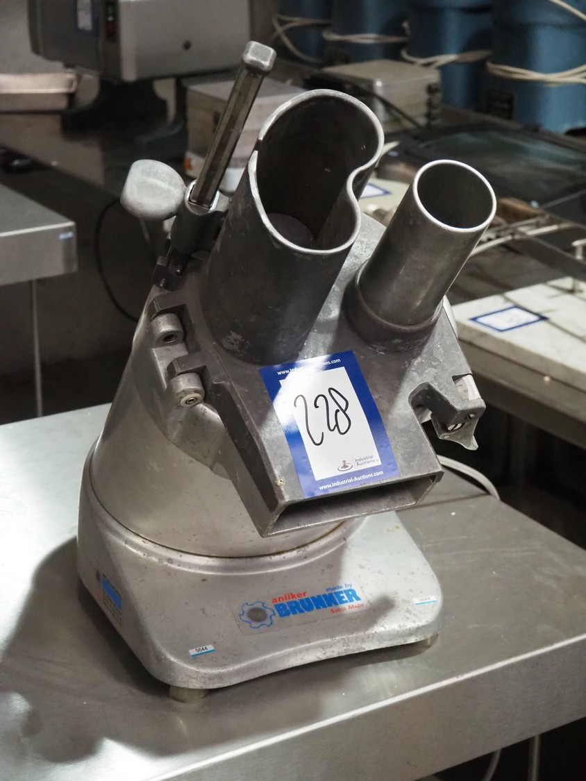 Brunner vegetable slicer, type: GSM 4-SA, serial number: 81457, 230 V, 1 Ph, 50 Hz, 1.8 A, 0.22 kW, dimensions: 500 mm x 250 mm x 530 mm.