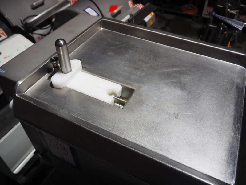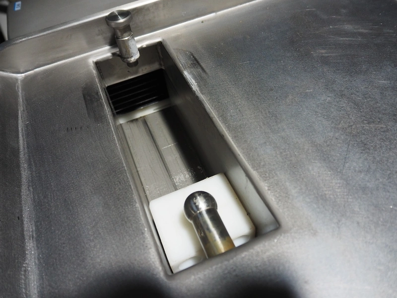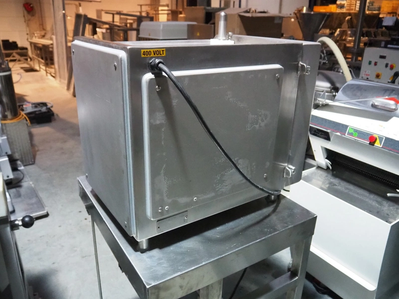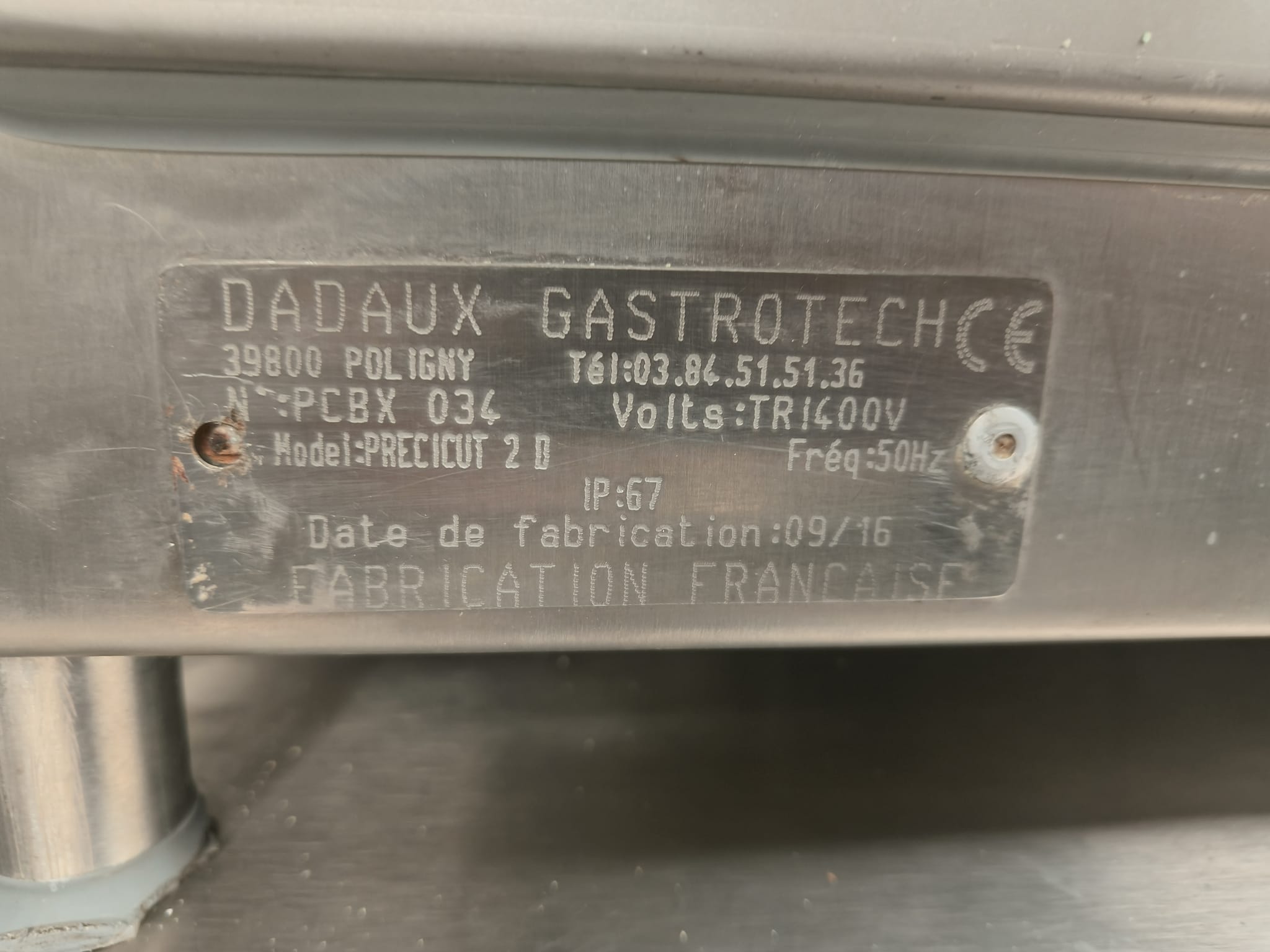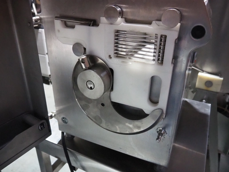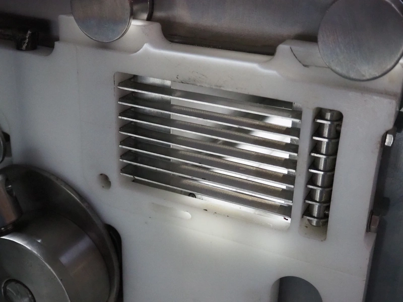 Dadaux strip cutter, chamber dimensions: 70 mm x 70 mm x 170 mm, distance between knives: 7 mm, total dimensions: 680 mm x 500 mm x 640 mm.