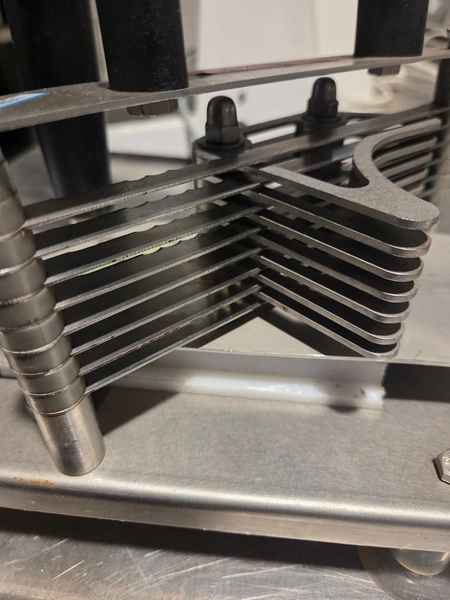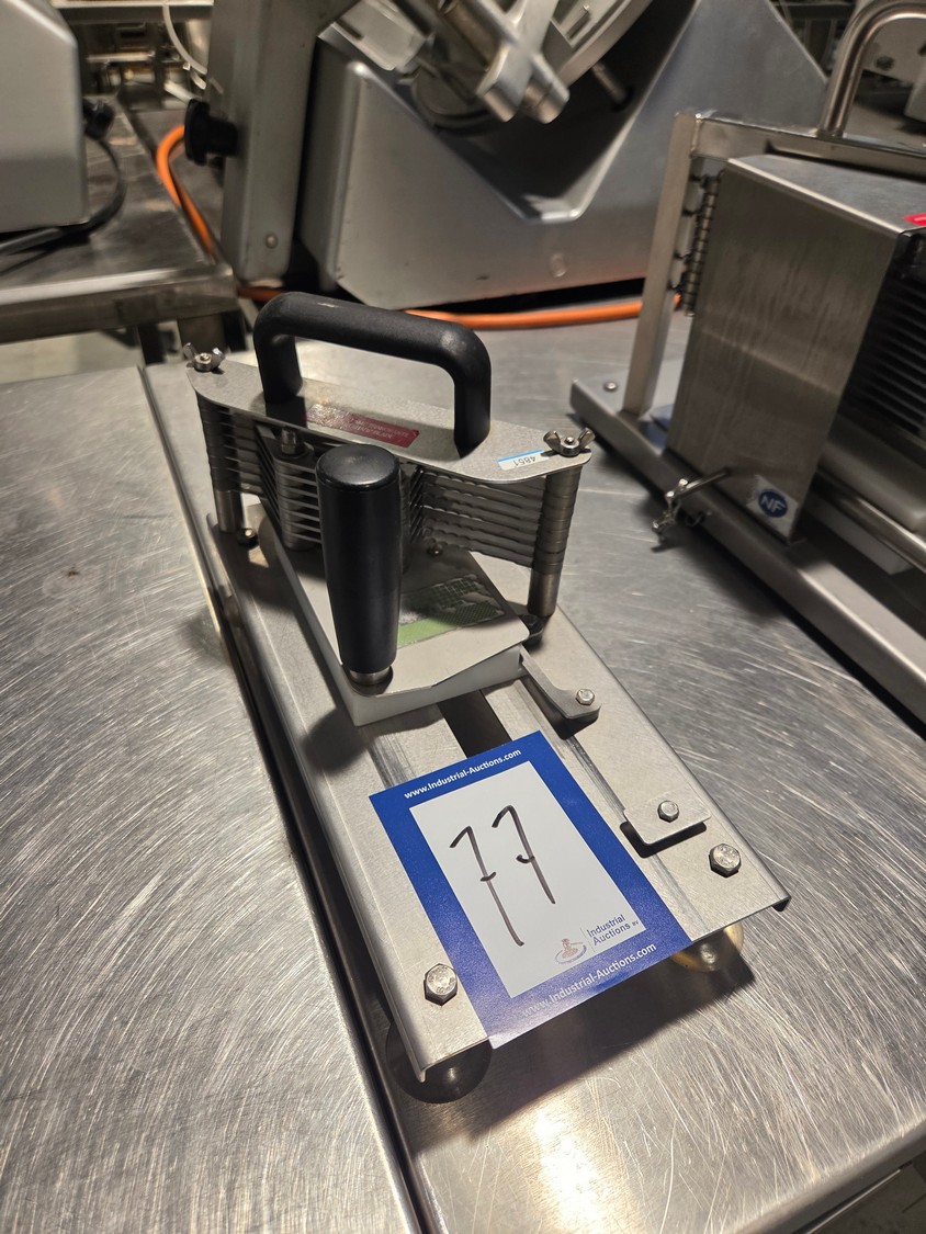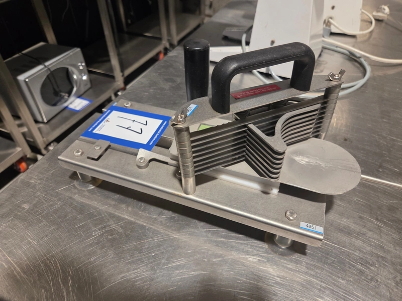 Louis Tellier tomato slicer, 8 knives, distance between knives: 5 mm, total dimensions: 330 mm x 140 mm x 180 mm.