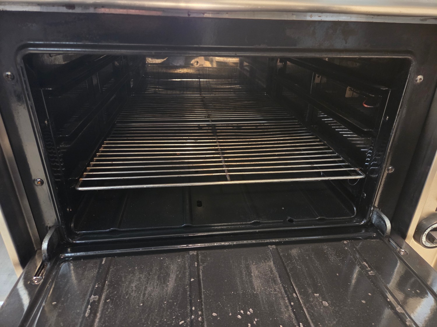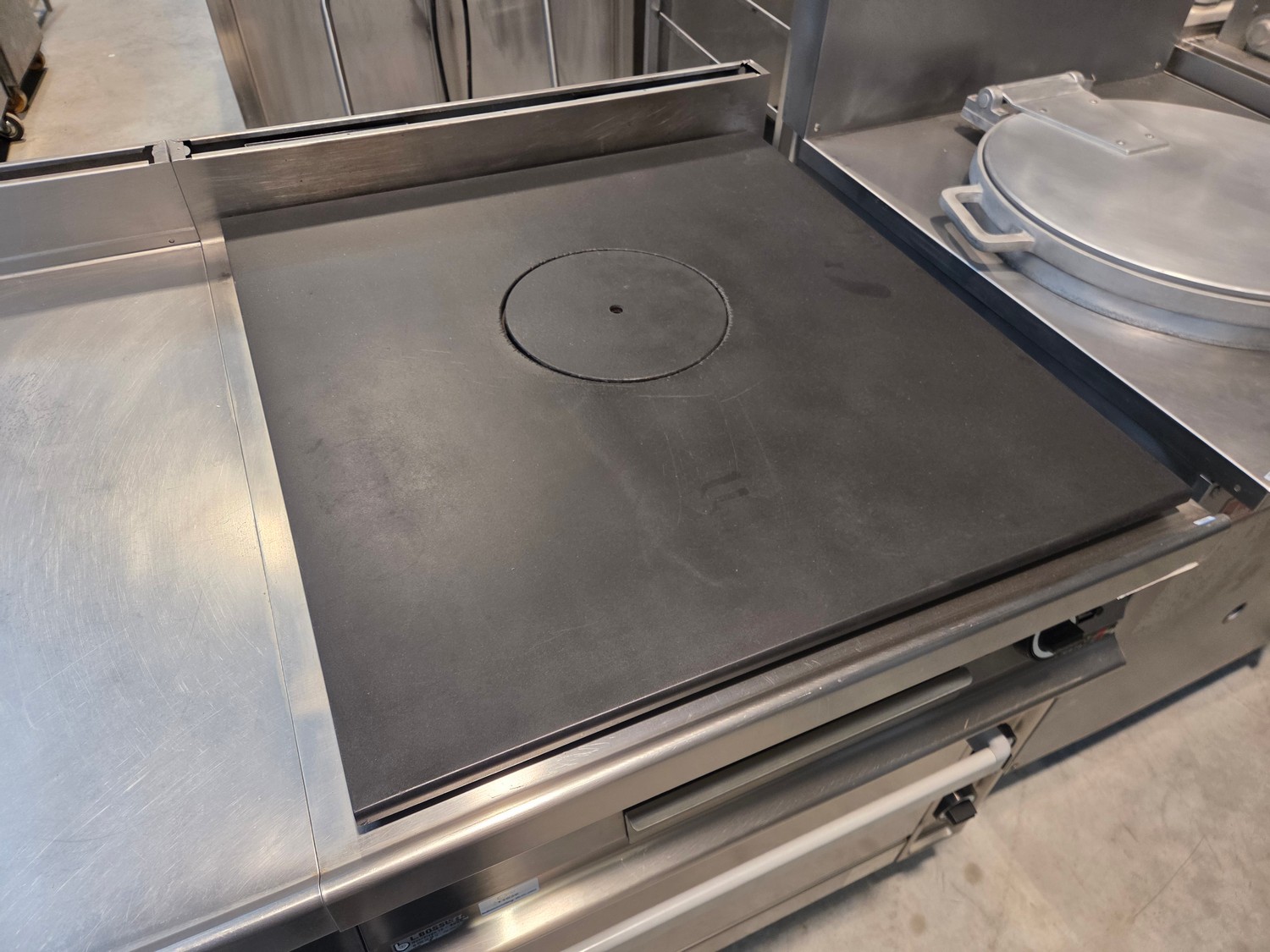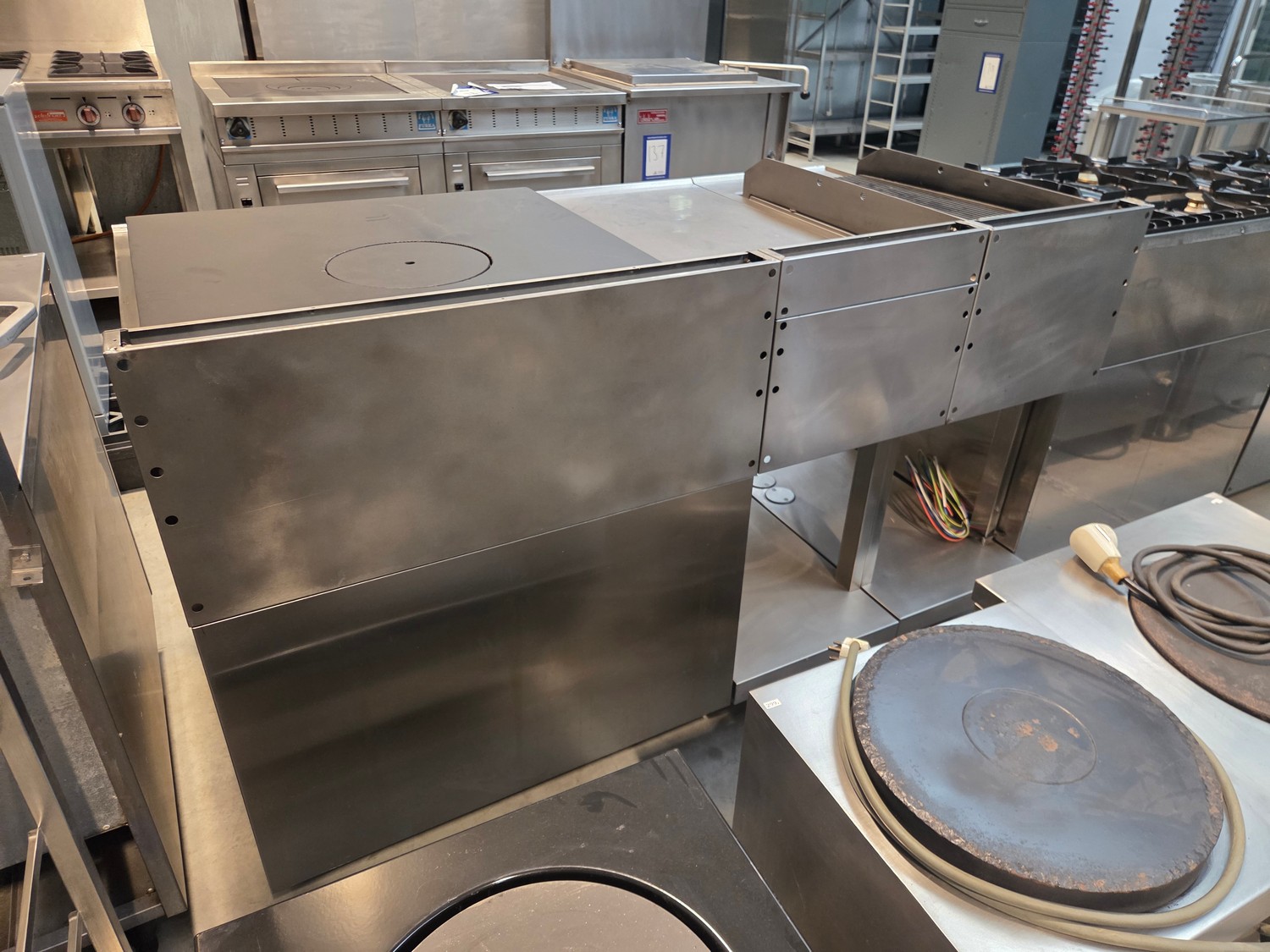 Erre 2 srl gas stove, grill and oven, model: 90/200, type: B11, number: OM12057001, 400 V, 3 Ph, 50 Hz, 1.48 m³ per hour, 3 floors, dimensions each floor: 630 mm x 540 mm, total dimensions: 1600 mm x 910 mm x 1000 mm.