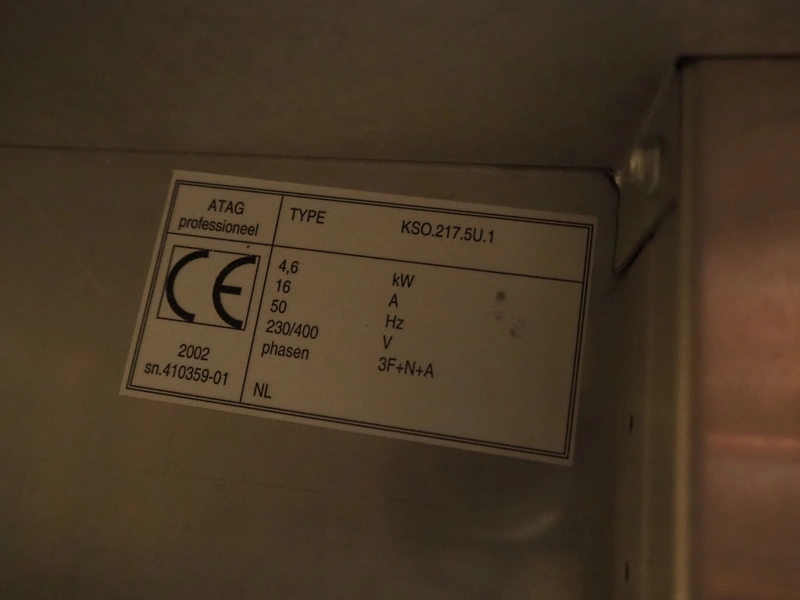 Atag 2-pit stove, type: KSO.217.5U.1, serial number: 410359-01, year of construction: 2002, 230/400 V, 3 Ph, 50 Hz, 16 A, 4.6 kW, dimensions: 700 mm x 350 mm x 920 mm.