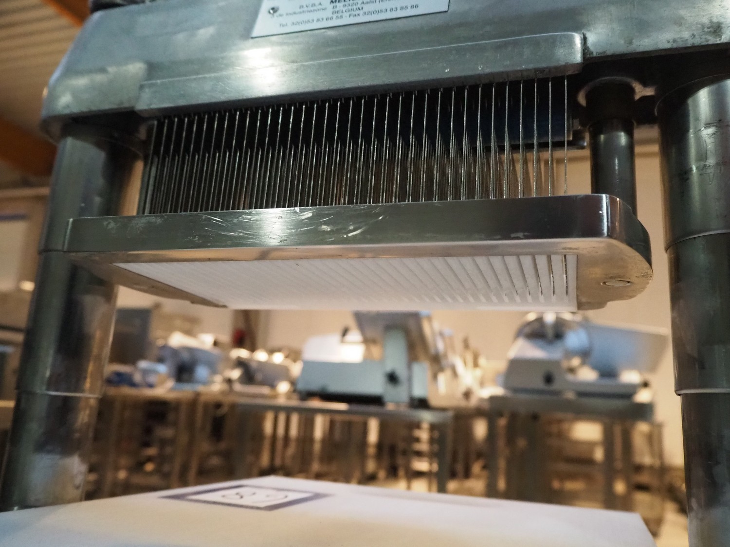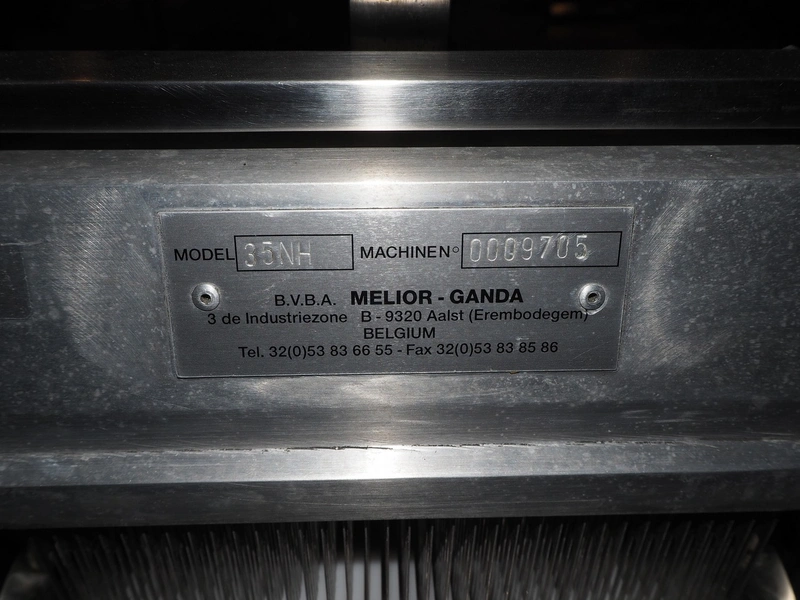 Melior-Ganda tenderizer, model: 35NH, number: 0009705, clearance: 290 mm x 100 mm, dimensions: 440 mm x 400 mm x 1670 mm.
