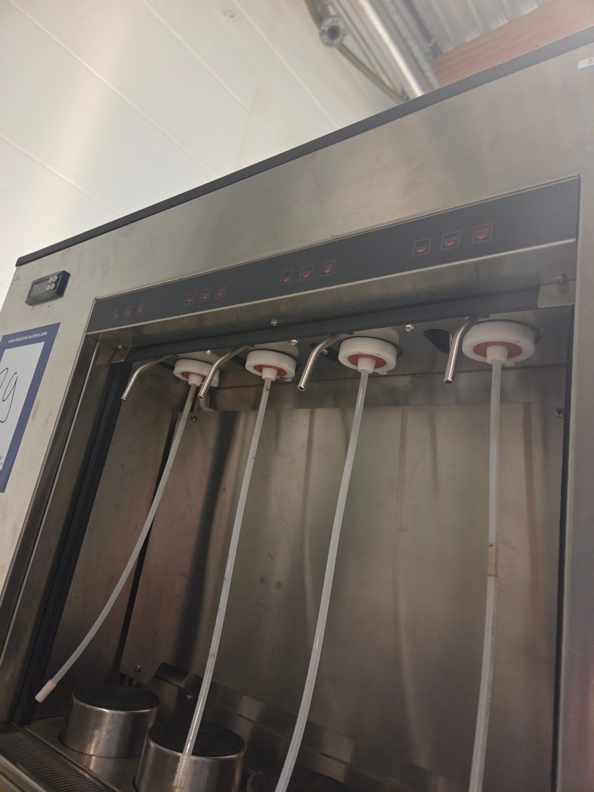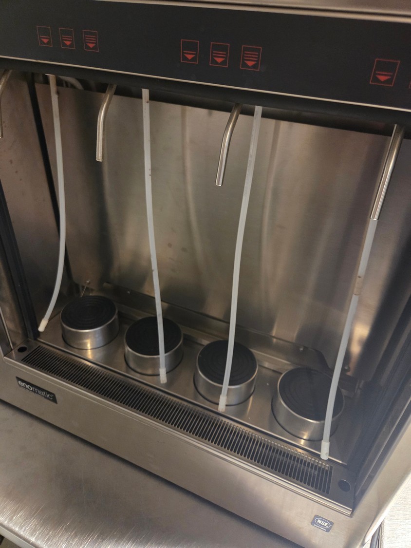 Enomatic 4‑bottle wine dispenser climate cabinet, serial number: 090008496, year of construction: 04/2009, 220 V, 50 Hz, 150 W, dimensions: 750 mm x 250 mm x 650 mm.