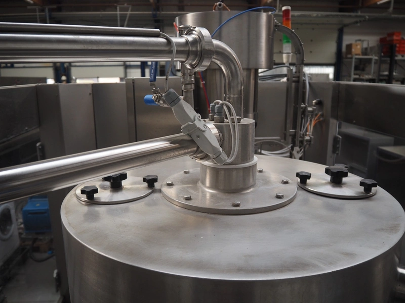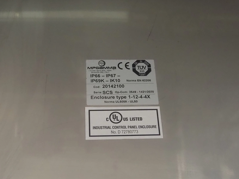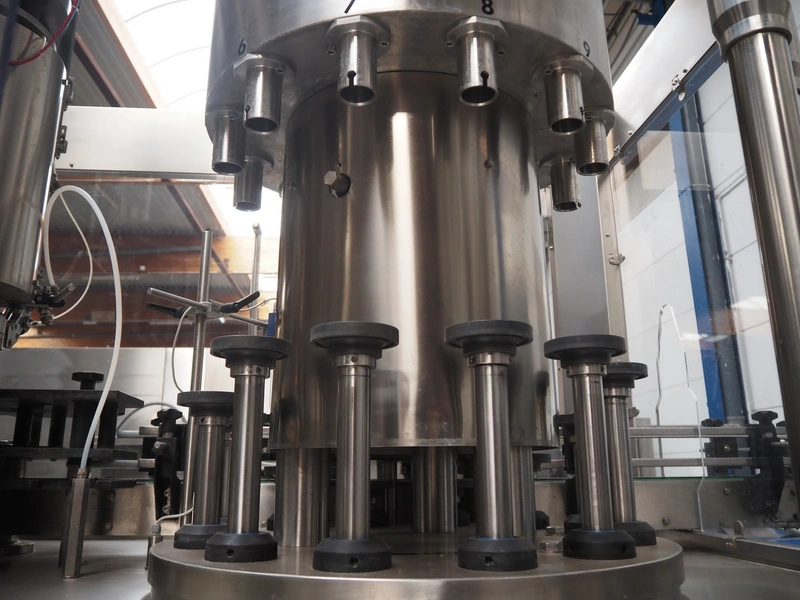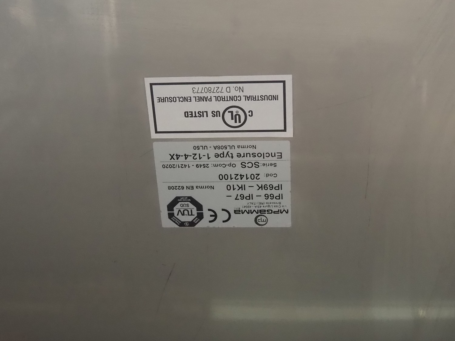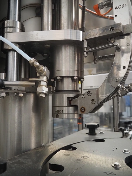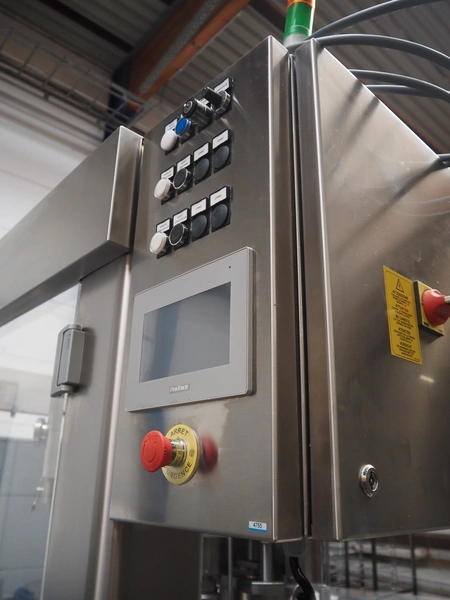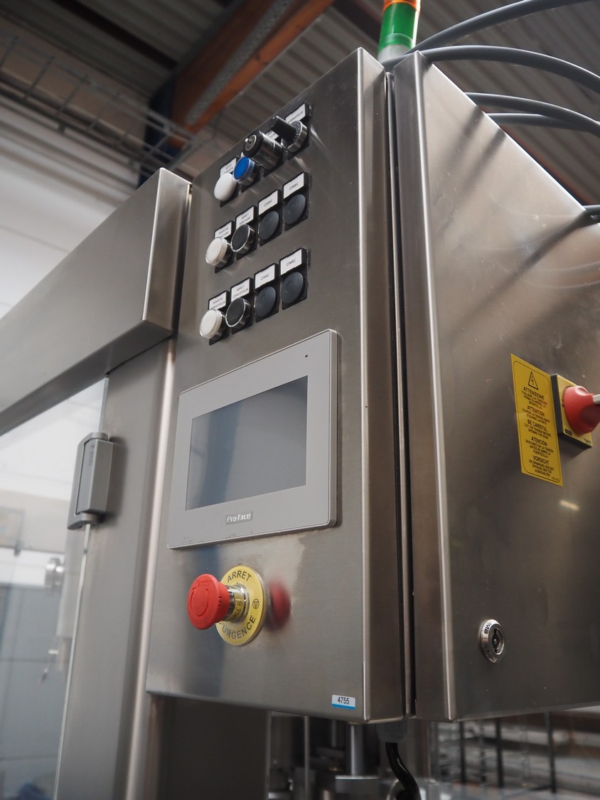 Cimec filling and closing machine for bottles, type: MO.LD.12.1EAGLE C, serial number: 2032, year of construction: 2020, 400 V, 3 Ph, 50 Hz, 4.5 kW, s/s belt, belt width: 80 mm, bottles: Ø 60 mm, 12 filling stations, total dimensions: 5100 mm x 1600 mm x 2600 mm. Without rollies.