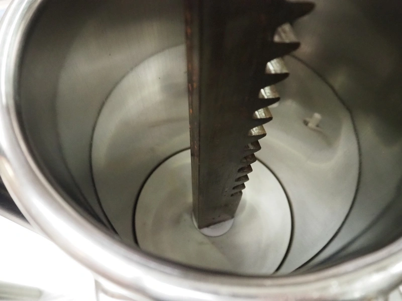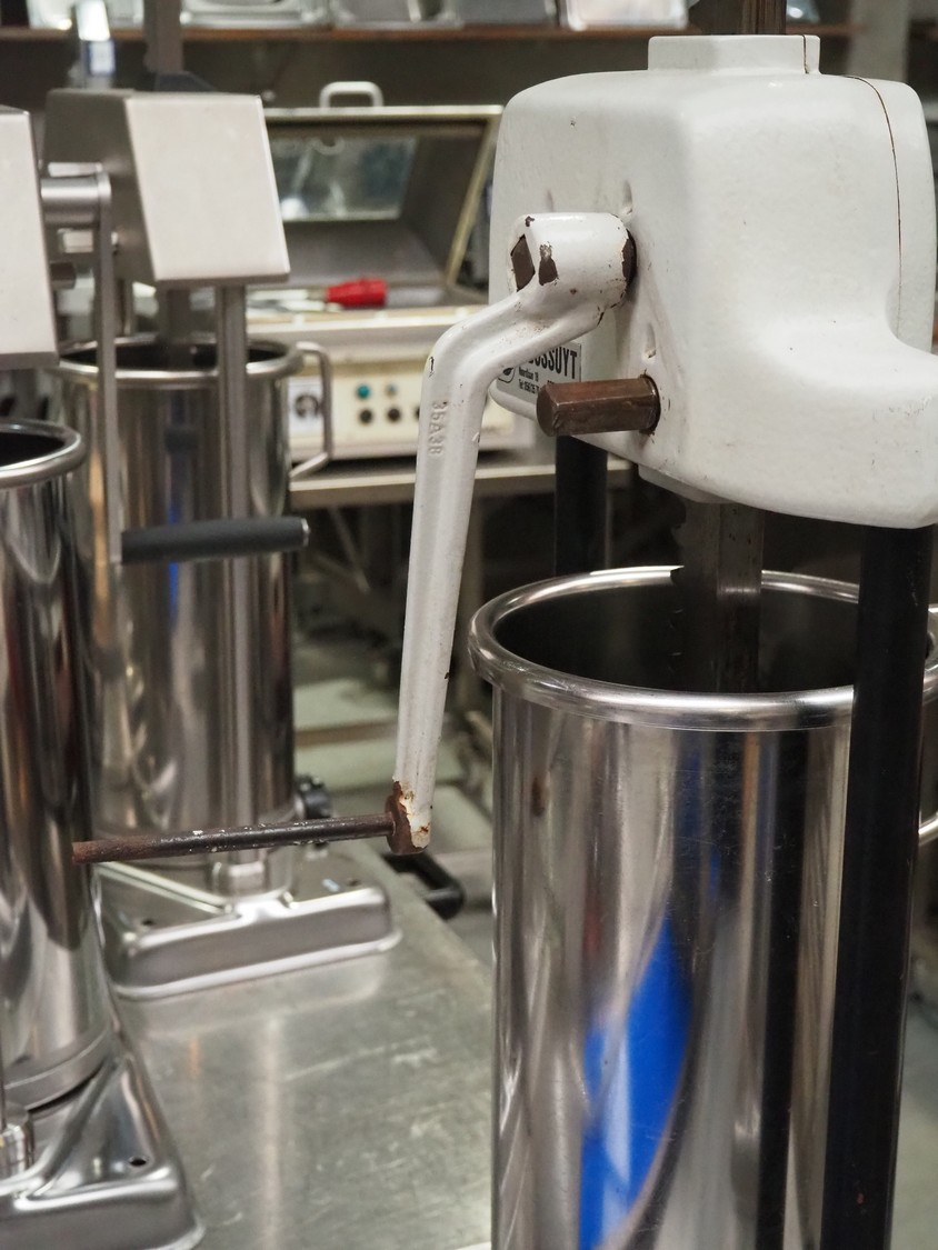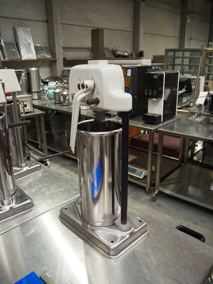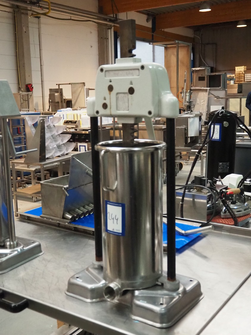 L.Bossuyt piston filler, dimensions inside: Ø 190 mm x 300 mm, total dimensions: 400 mm x 250 mm x 840 mm.