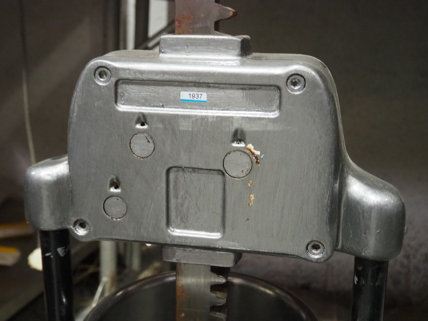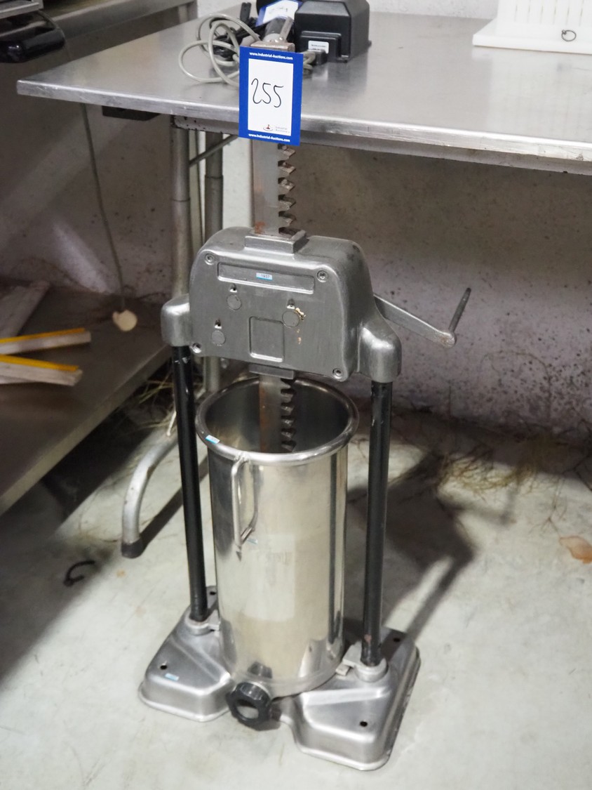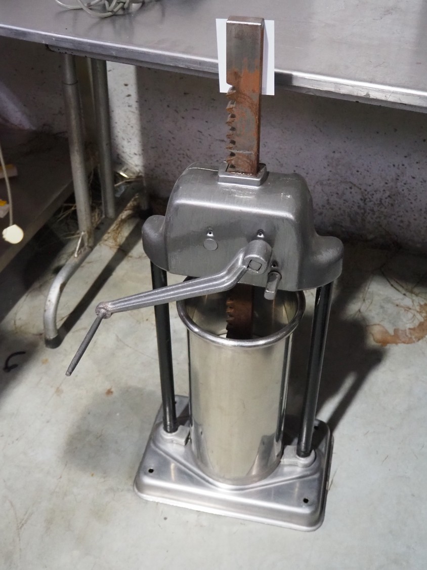 Manual piston filler, inside dimensions: Ø 190 mm x 400 mm, dimensions: 400 mm x 260 mm x 1200 mm.