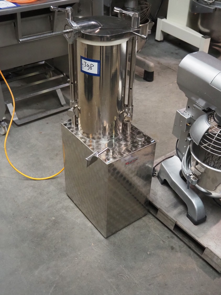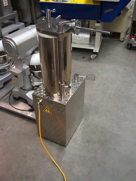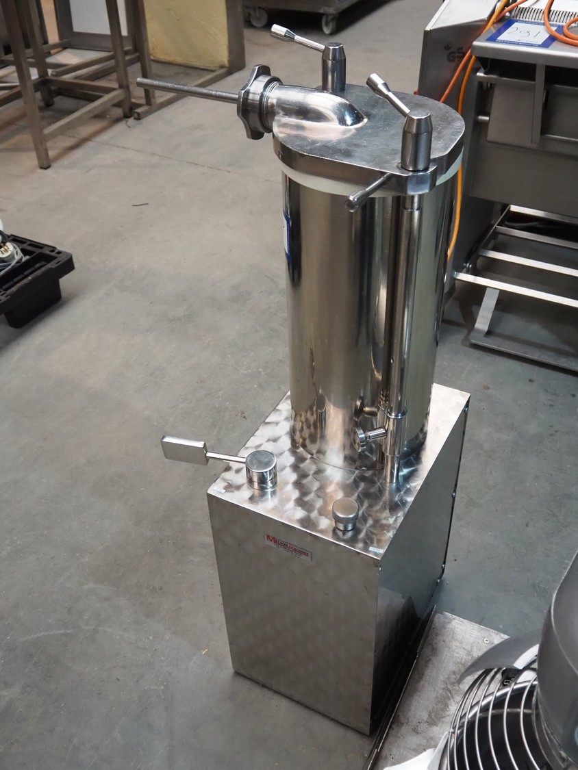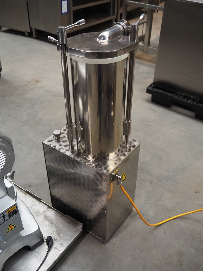 Debotec piston filler, dimensions inside: Ø 230 mm x 450 mm, total dimensions: 550 mm x 450 mm x 1150 mm.
