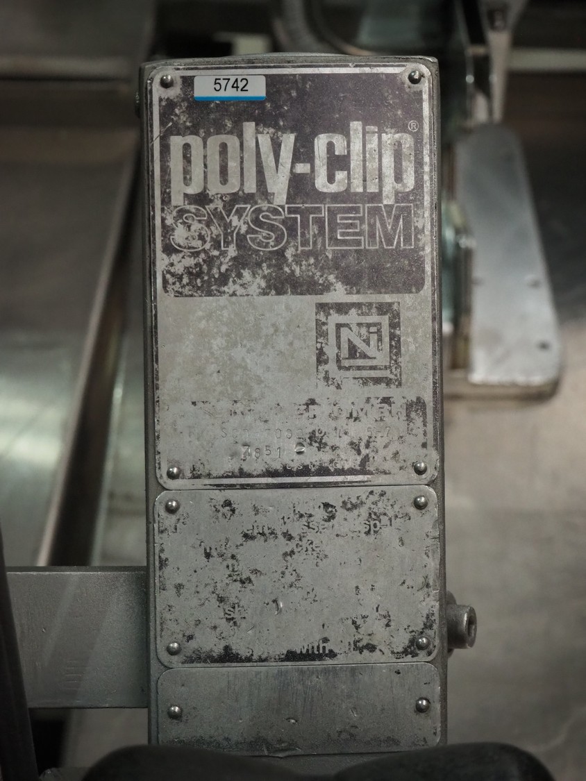Poly-clip System GmbH & Co. KG clipper type: SCD 7000, serial number: 7851, pressure: 5-7 bar, dimensions: 400 mm x 1800 mm x 920 mm.