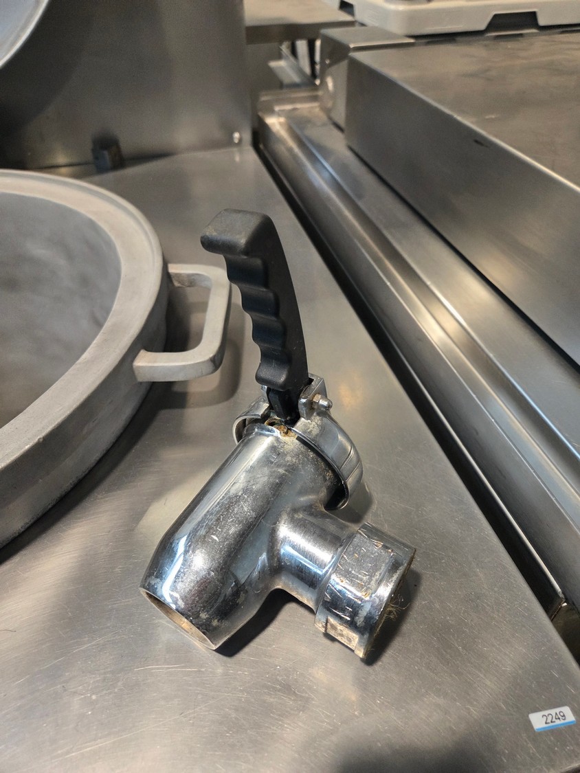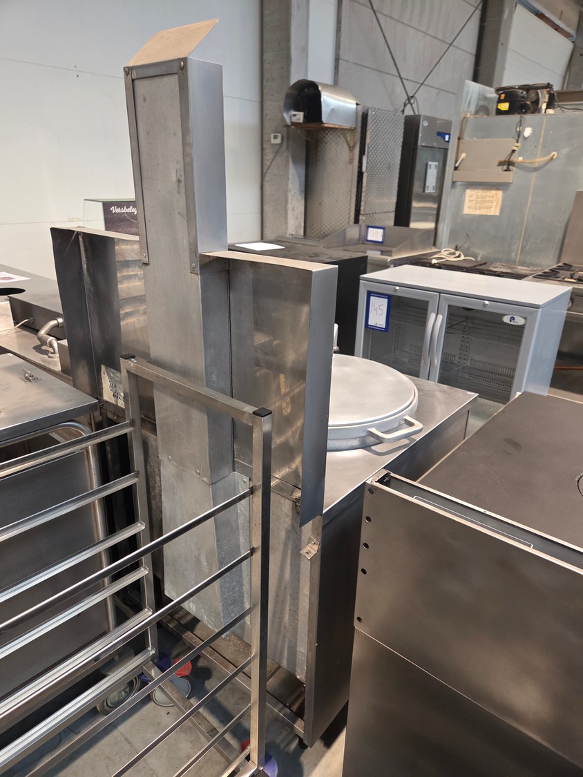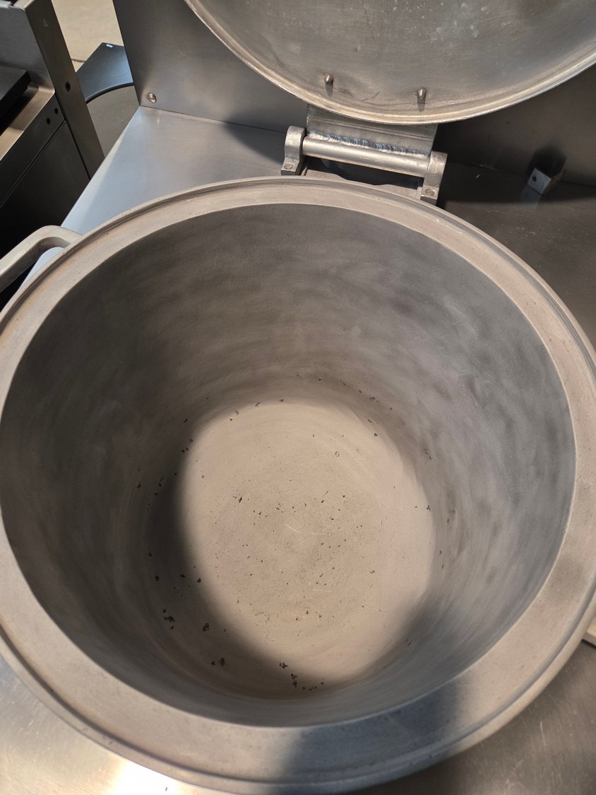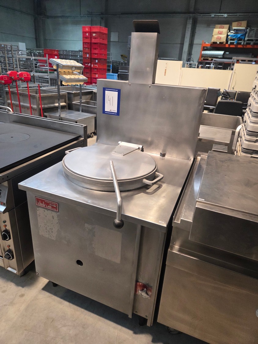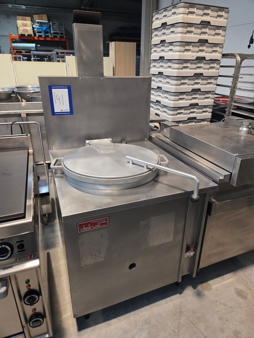 Delrue cooking vessel, serial number: 22941130, inside dimensions: Ø 500 mm x 470 mm, total dimensions: 900 mm x 1100 mm x 1700 mm.