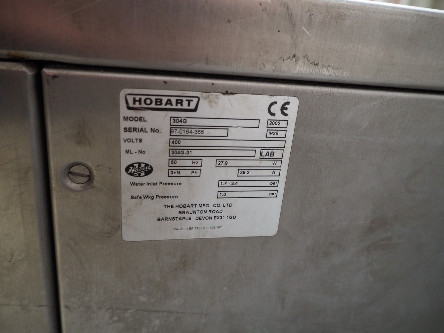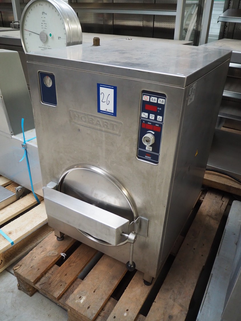 Hobart high speed steam cooker, model: 304G, serial number: 97-0164-366, year of construction: 2002, 400 V, 3 Ph, 50 Hz, 39.2 A, 27.9 W, inside dimensions: 520 mm x 300 mm, total dimensions: 800 mm x 600 mm x 950 mm.
