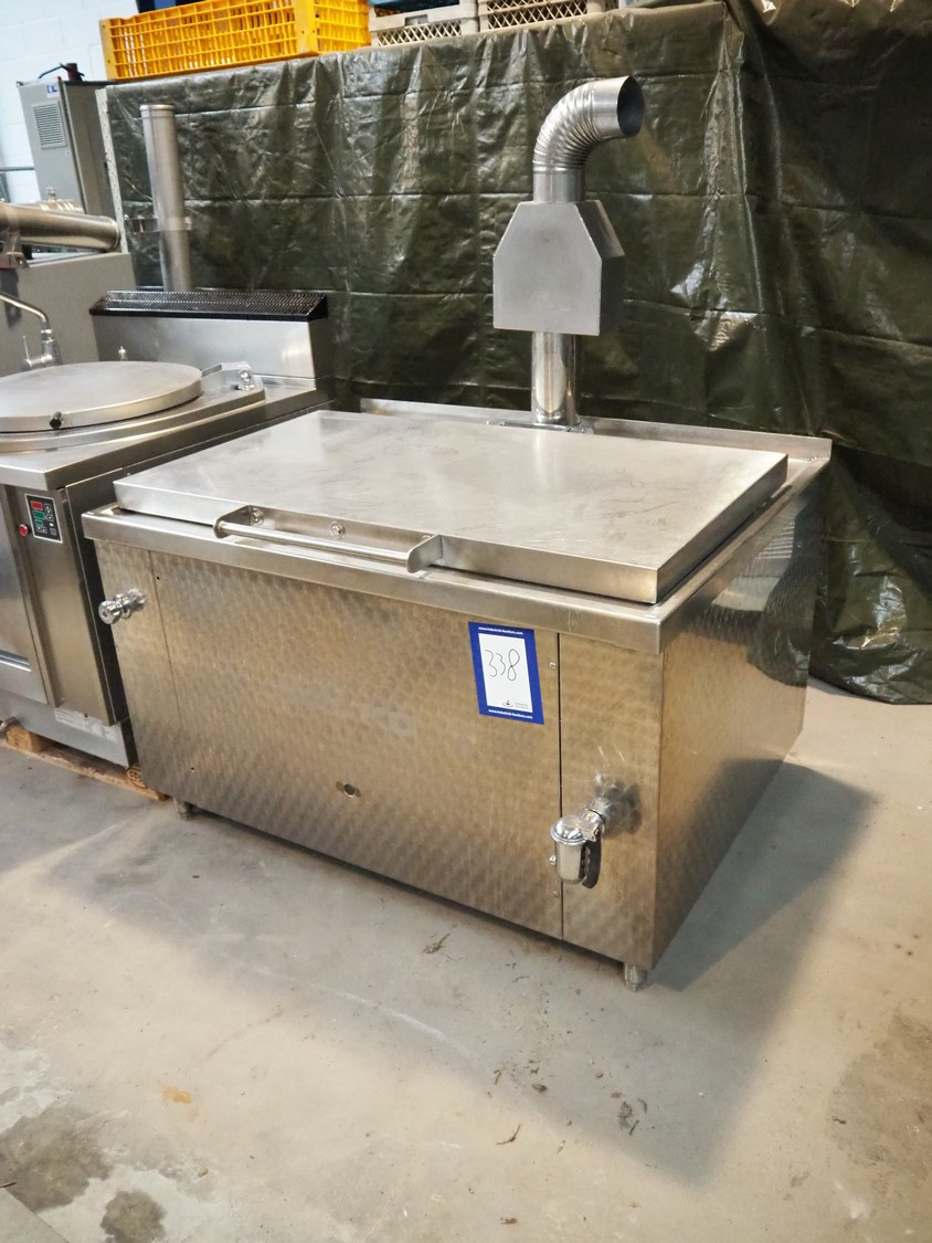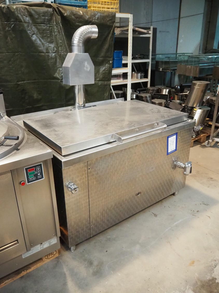Spako cooking vessel, type: RHA400, number: 0085 BM 0459, year of construction: 2014, 230 V, 50 Hz, 60 W, 27.9/31 kW, gas heated, natural gas, gas consumption: 2.70 m³ per hour, inside dimensions: 1100 mm x 650 mm x 485 mm, total dimensions: 1400 mm x 1170 mm x 985 mm.