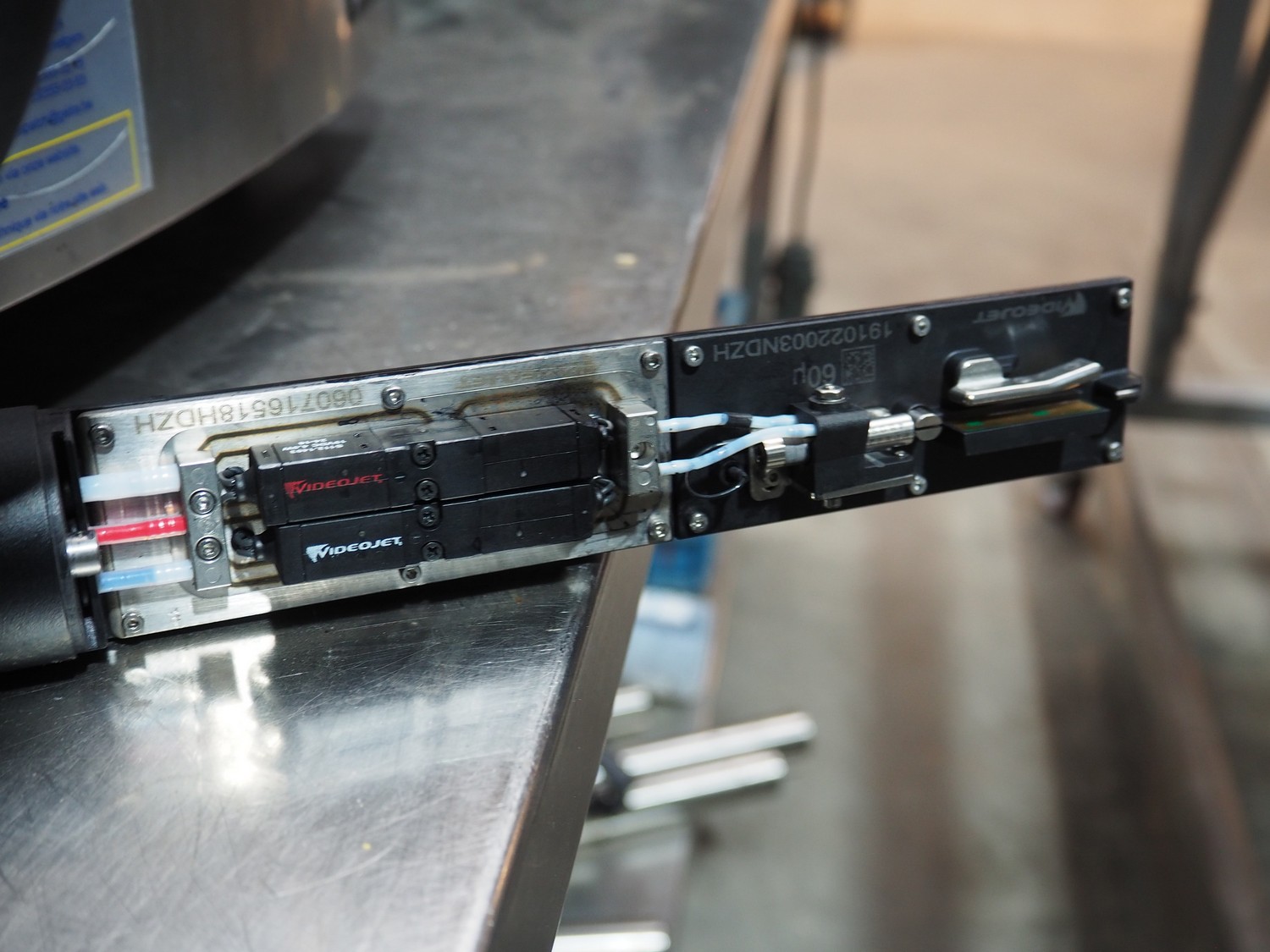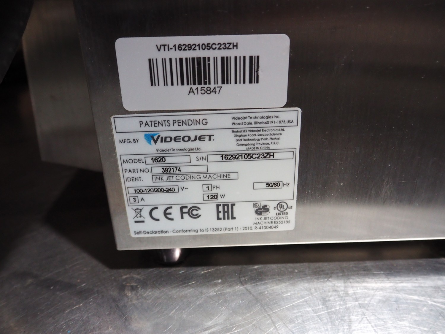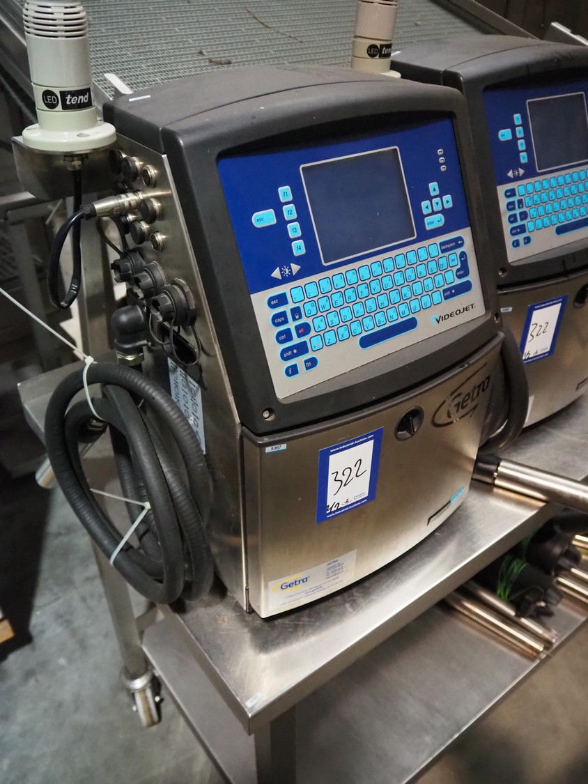 2 Videojet inkjet printer, model: 1620, serial number: 16292105C23ZH and 16190019C23ZH, 100-120/200-240 V, 1 PH, 50/60 Hz, 3 A, 120 W, dimensions: 450 mm x 350 mm x 850 mm.