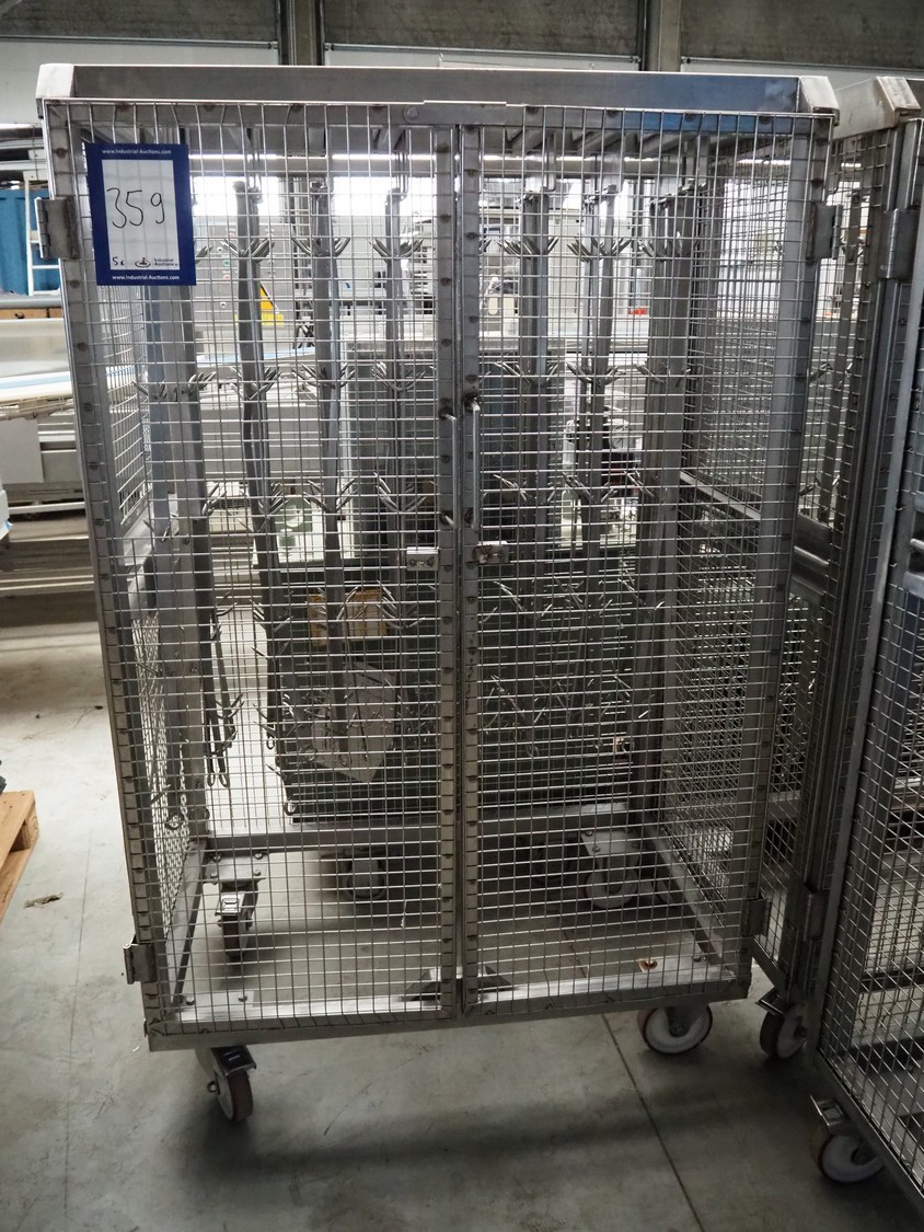 5 s/s trolleys with large amount of meat hooks, meat hook length: 1300 mm, trolley dimensions: 800 mm x 1220 mm x 1990 mm.