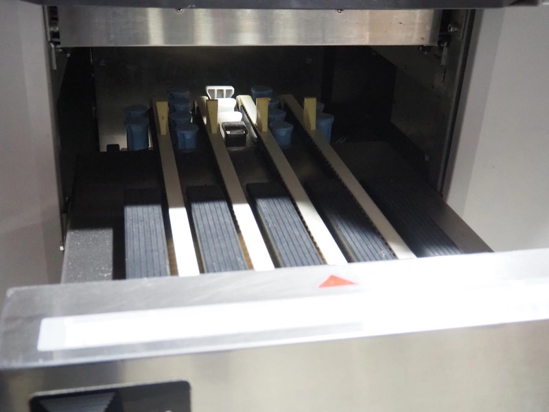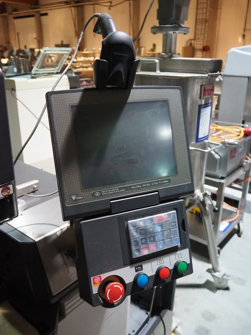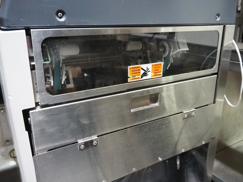 Teraoka Seiko Co., LTD semi automatic weigh, wrap and labelling machine, model: AW-4600CP, serial number: 14172045, year of construction: 2014, 220-240 V, 1 Ph, 50/60 Hz, 5 A, 1.0 kW, maximum weight: 3/6 kg, minimum weight: 20 gram, e=1/2 gram, T=-2.999 kg, dimensions: 1100 mm x 1050 mm x 1500 mm.