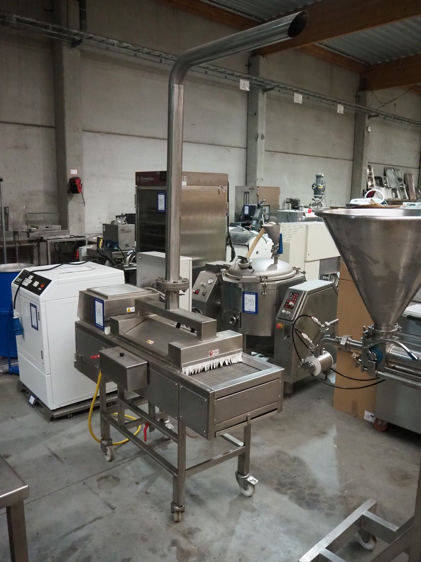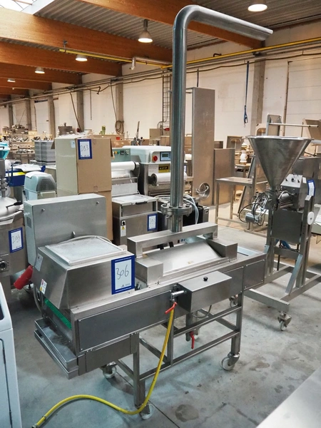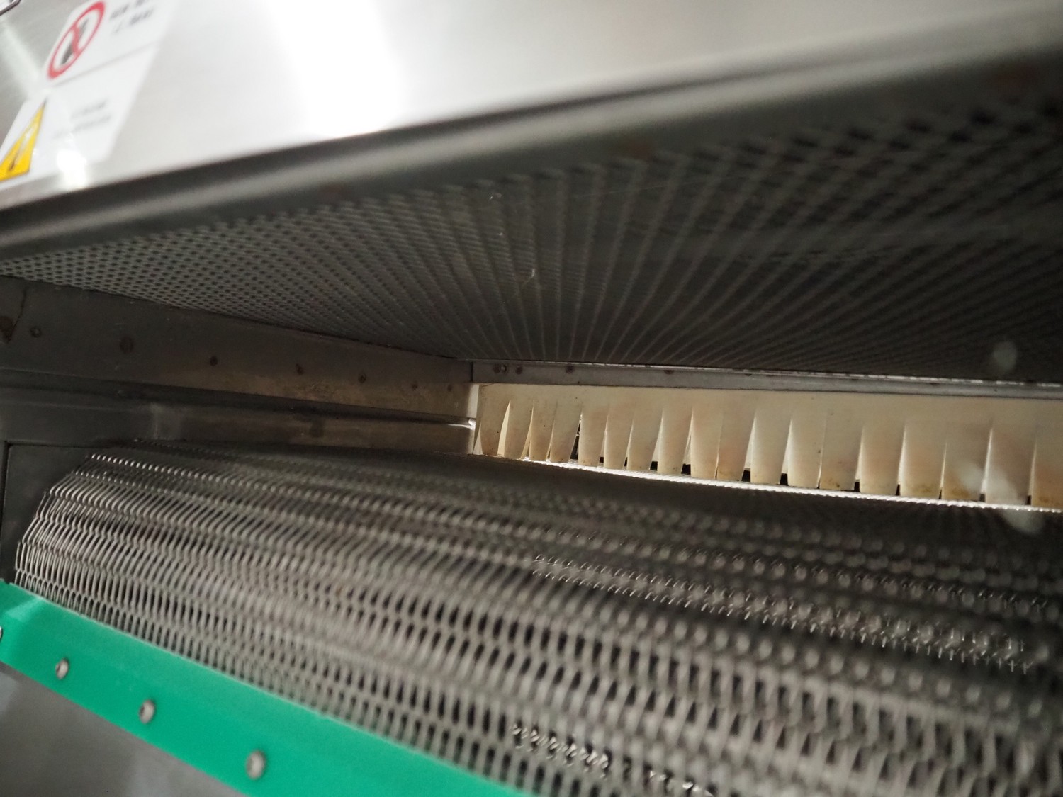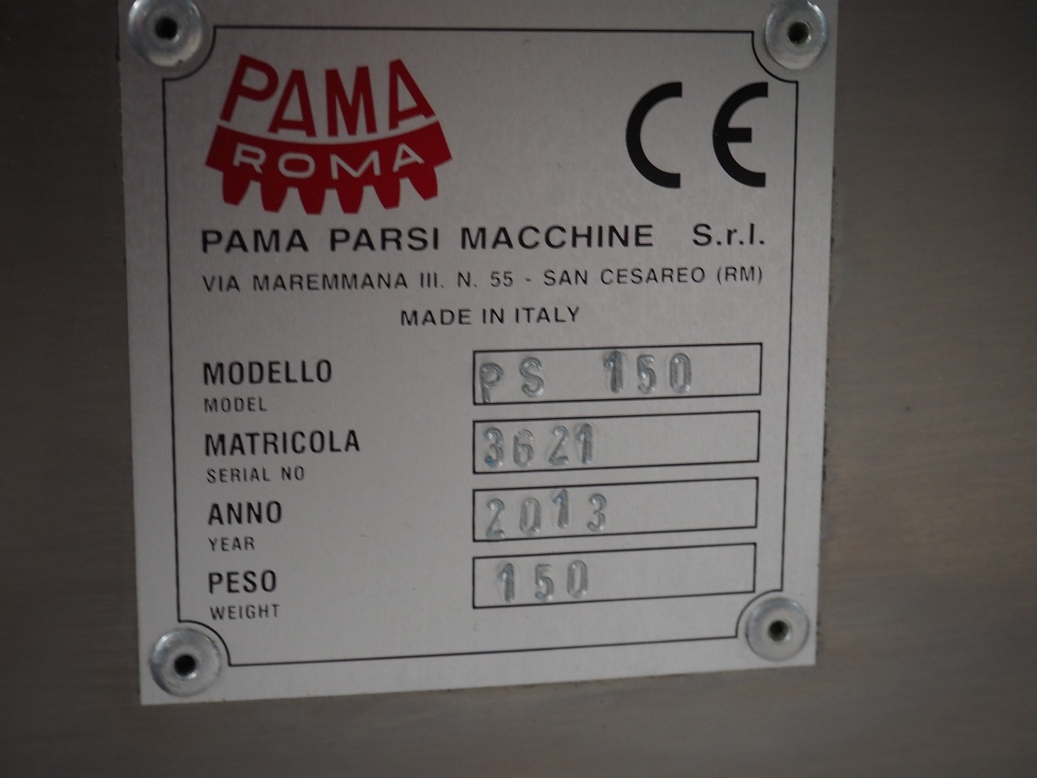 Pama Parsi Machine S.r.l. mobile pasteurizer, model: PS 150, serial number: 3621, year of construction: 2013, 400 V, 3 Ph, 50 Hz, 14 A, 9 kW, weight: 150 kg, s/s mesh belt, belt width: 400 mm, total dimensions: 1580 mm x 850 mm x 2450 mm.