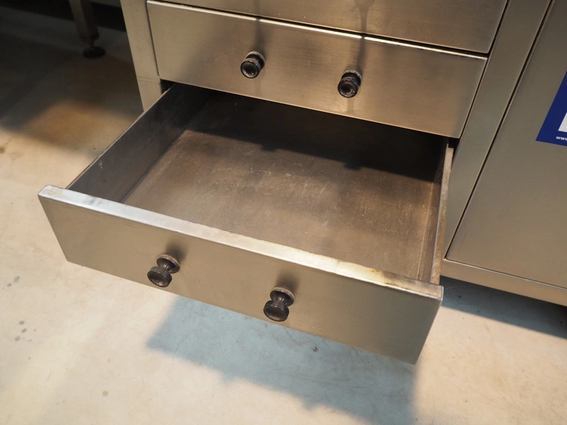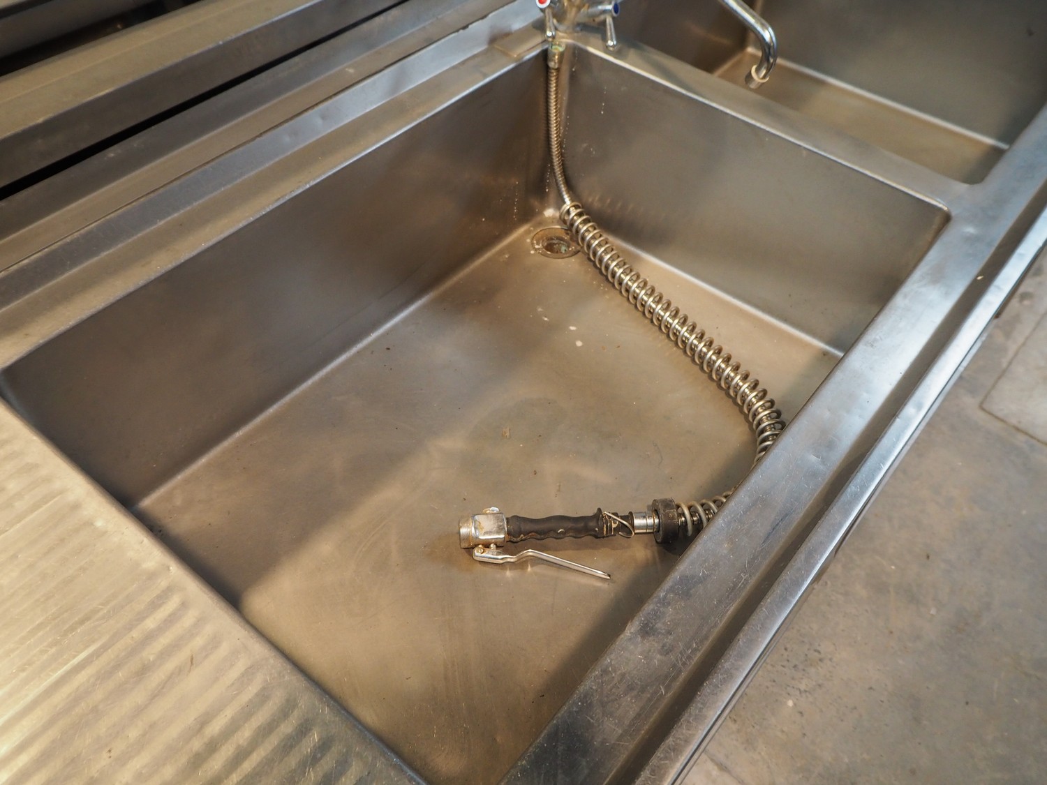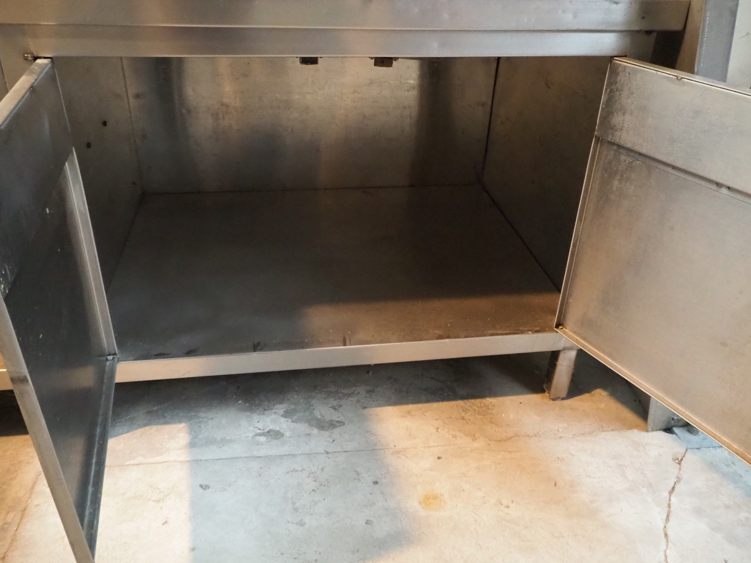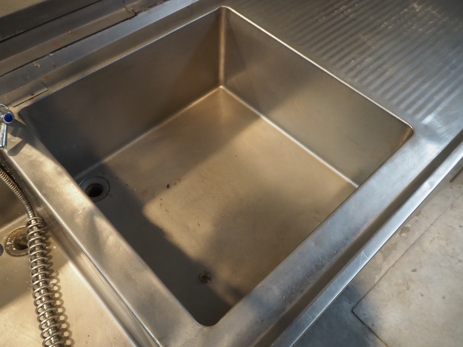 S/s cabinet with double sink and pre-rinse faucet, dimensions: 3750 mm x 850 mm x 1600 mm