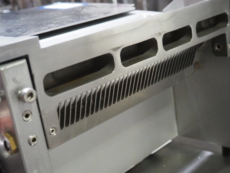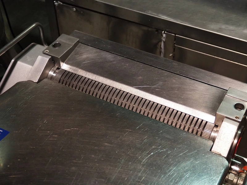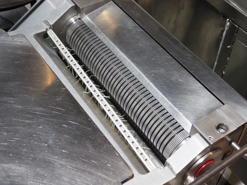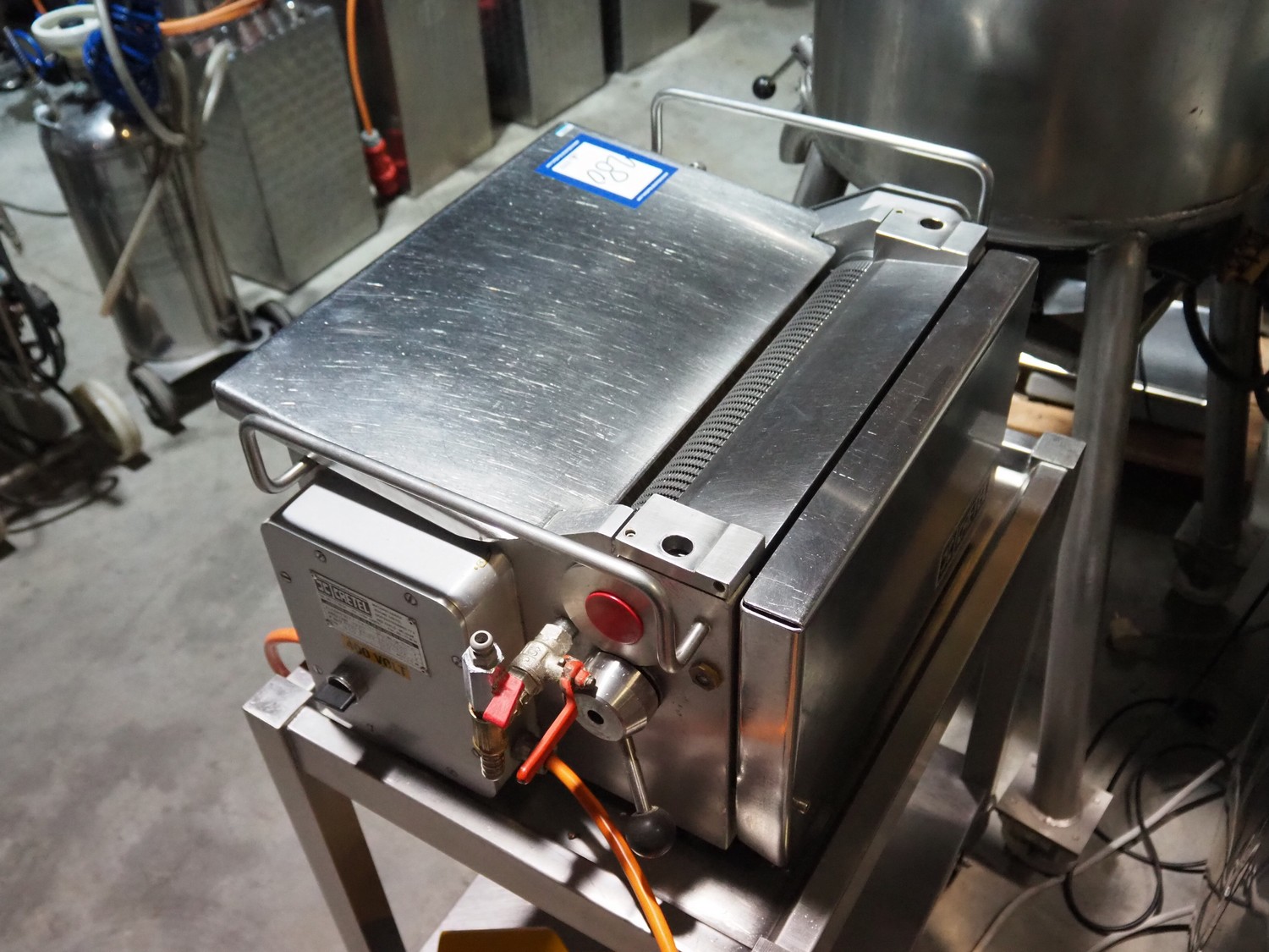 Cretel skinning machine with foot control, type: 360F, number: A894.90.03, year of construction: 23-03-1990, 220/380 V, 50 Hz, 2.46/1.42 A, 0.55 kW, working width: 325 mm, total dimensions: 550 mm x 450 mm x 350 mm. Without table.