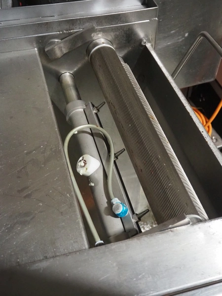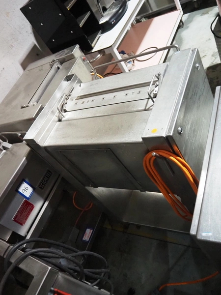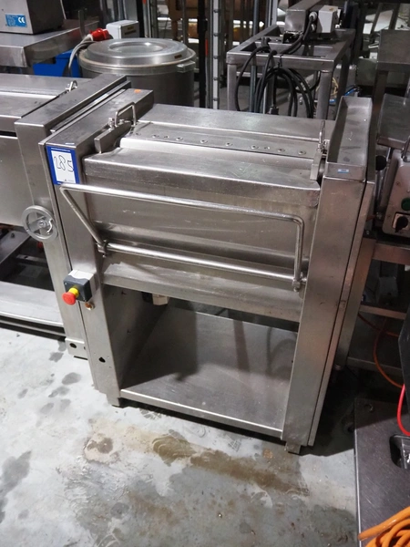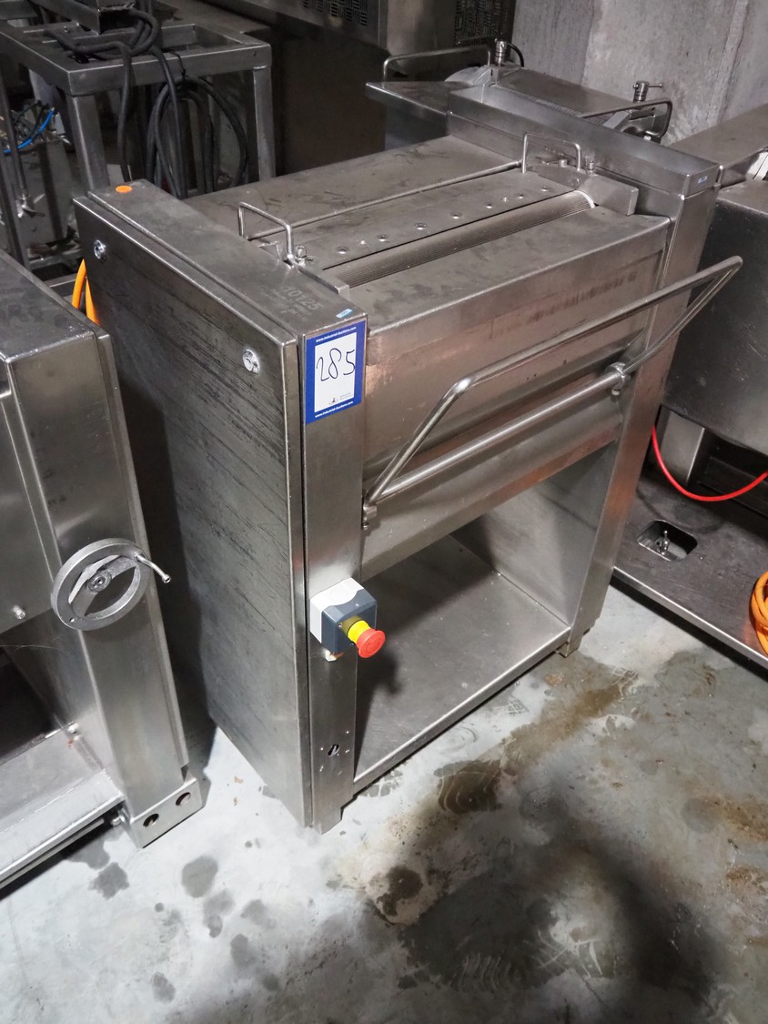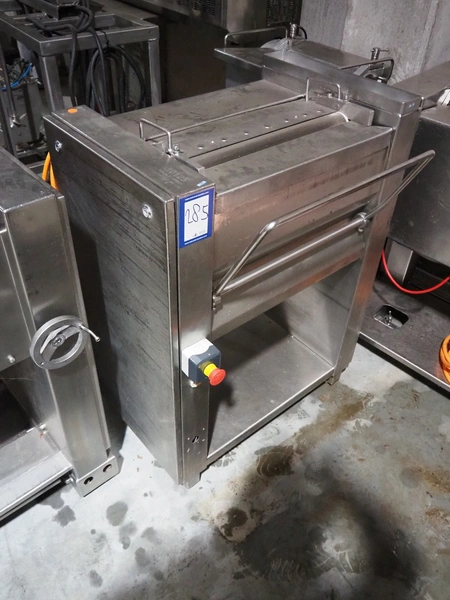 Weber mobile skinning machine, type: ASE 553, number: 1110, 380 V, 50 Hz, 0.4 kW, working width: 500 mm, total dimensions: 800 mm x 650 mm x 1000 mm.