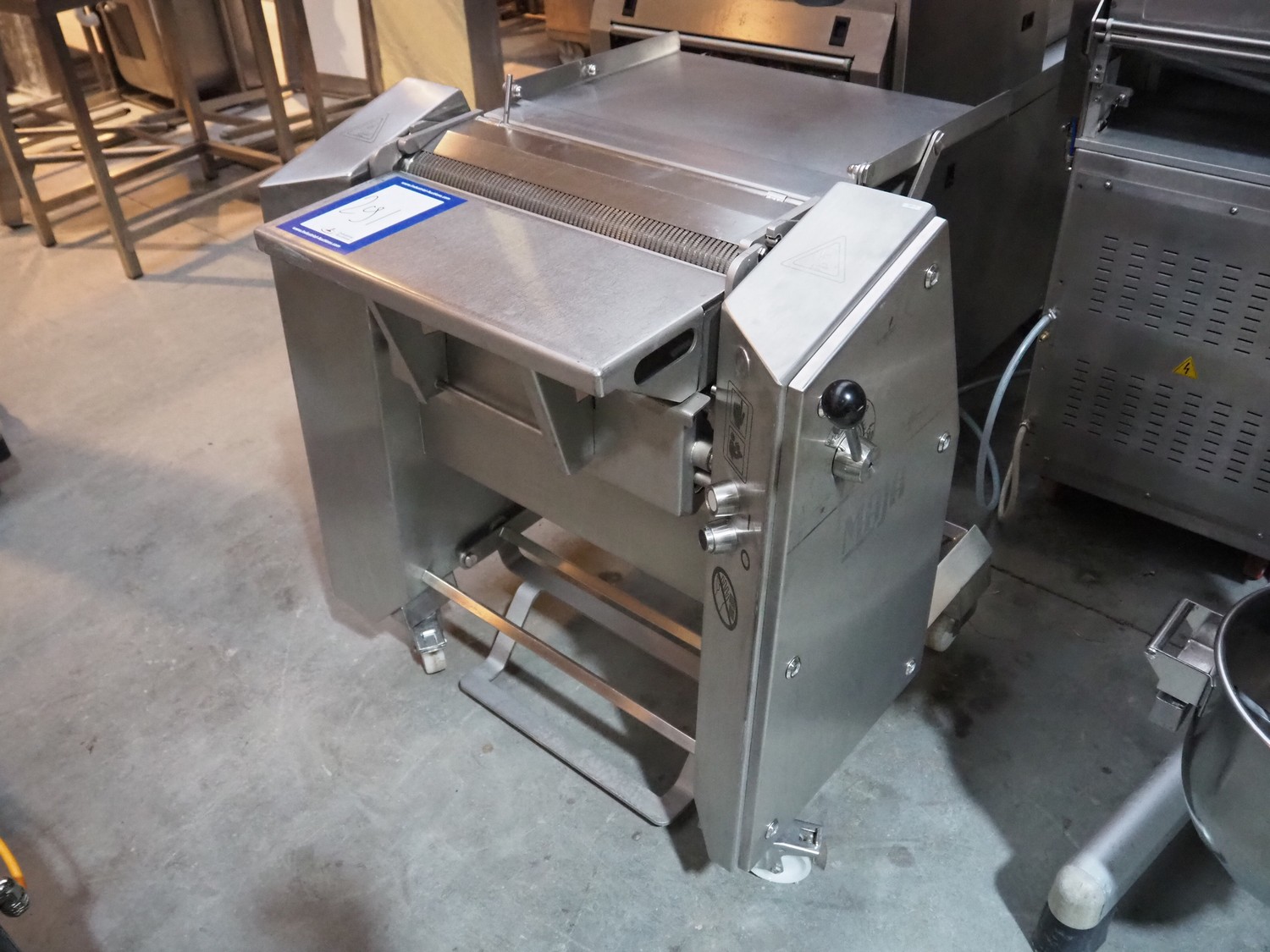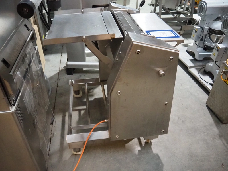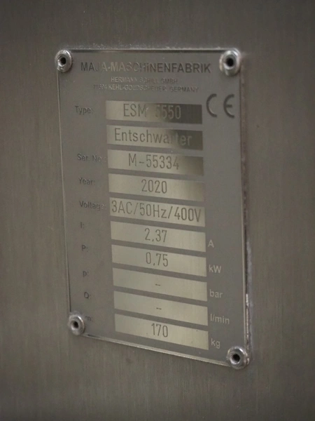 Maja mobile skinning machine, type: ESM 5550, serial number: M-55334, year of construction: 2020, 400 V, 3 Ph, 50 Hz, 2.37 A, 0.75 kW, weight: 170 kg, working width: 540 mm, total dimensions: 1000 mm x 860 mm x 1000 mm.