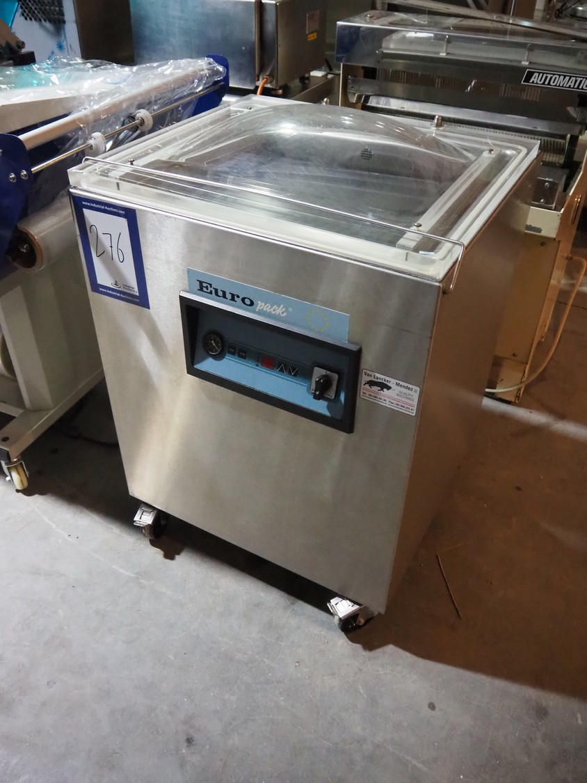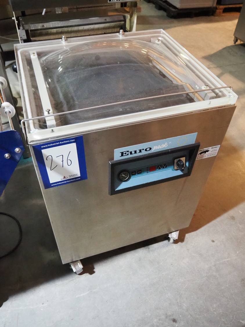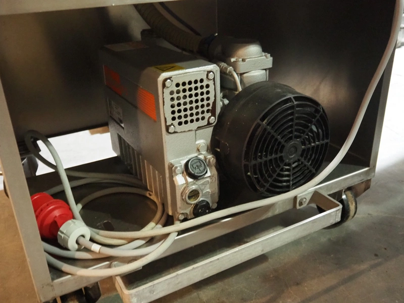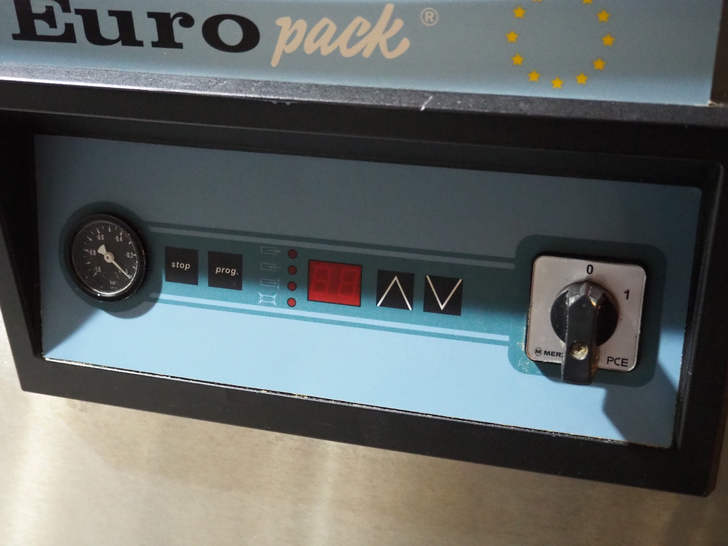 Europack mobile vacuum machine, seal length: (2x) 500 mm, chamber: 500 mm x 520 mm, Busch vacuum pump, type: RA 0040 F 5R3, capacity: 40 m³ per hour, total dimensions: 710 mm x 700 mm x 1050 mm.