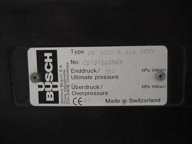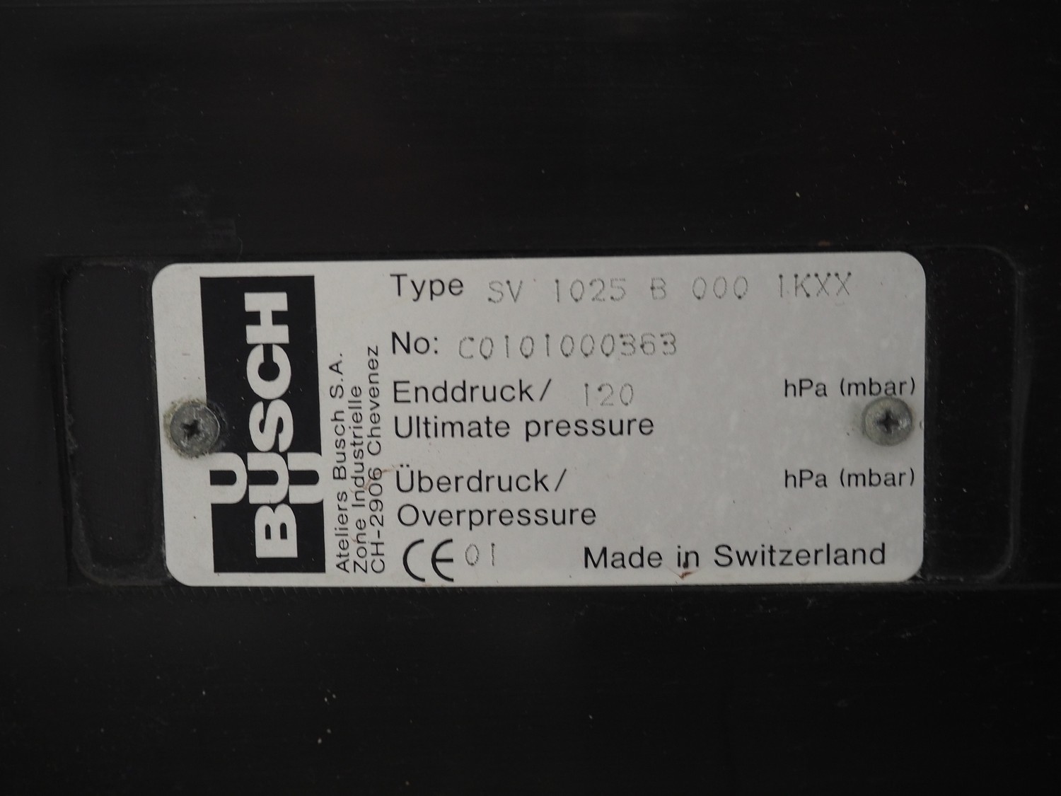 Busch vacuum pump, type: SV 1025 B 000, number: C0101000363, year of construction: 01, capacity: 25 m³/h, dimensions: 480 mm x 270 mm x 600 mm.