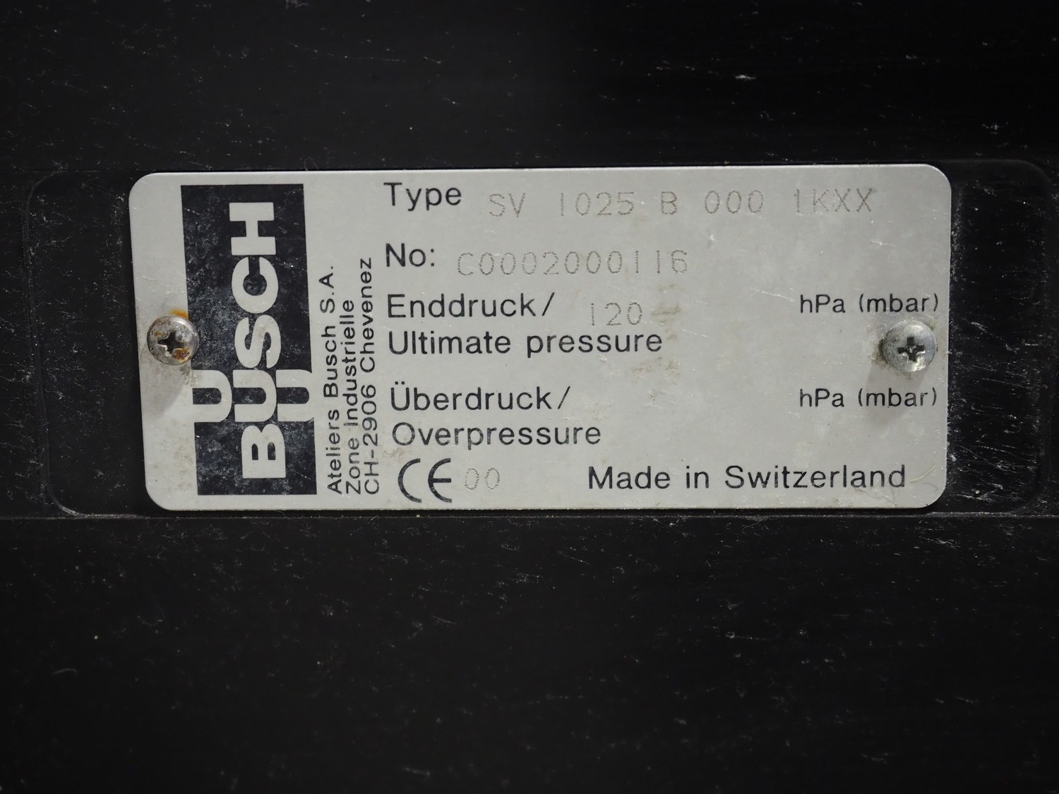 Busch vacuum pump, type: SV 1025 B 000 1 KXX, number: C0002000116, year of construction: 00, capacity: 25 m³/h, dimensions: 550 mm x 440 mm x 370 mm.