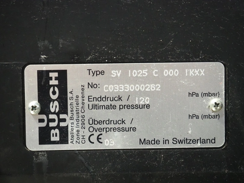 Busch vacuum pump, type: SV 1025 C 000, number: C0333000262, year of construction: 03, dimensions: 480 mm x 250 mm x 440 mm.