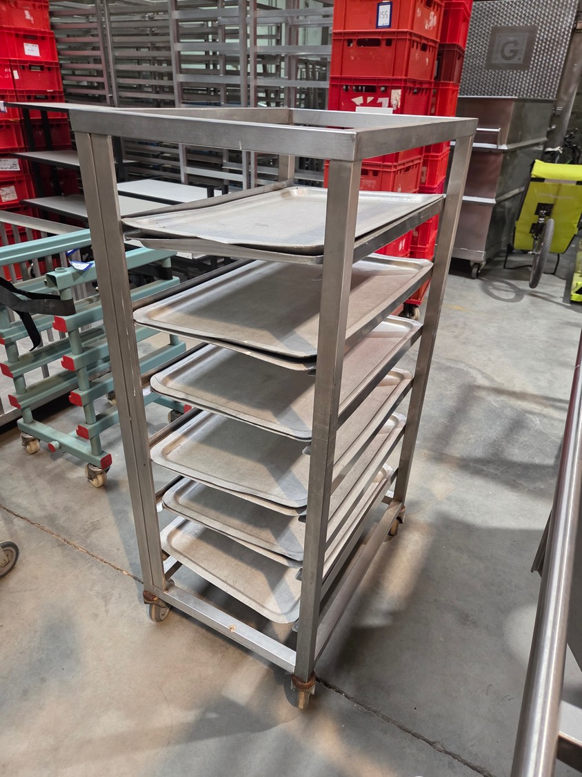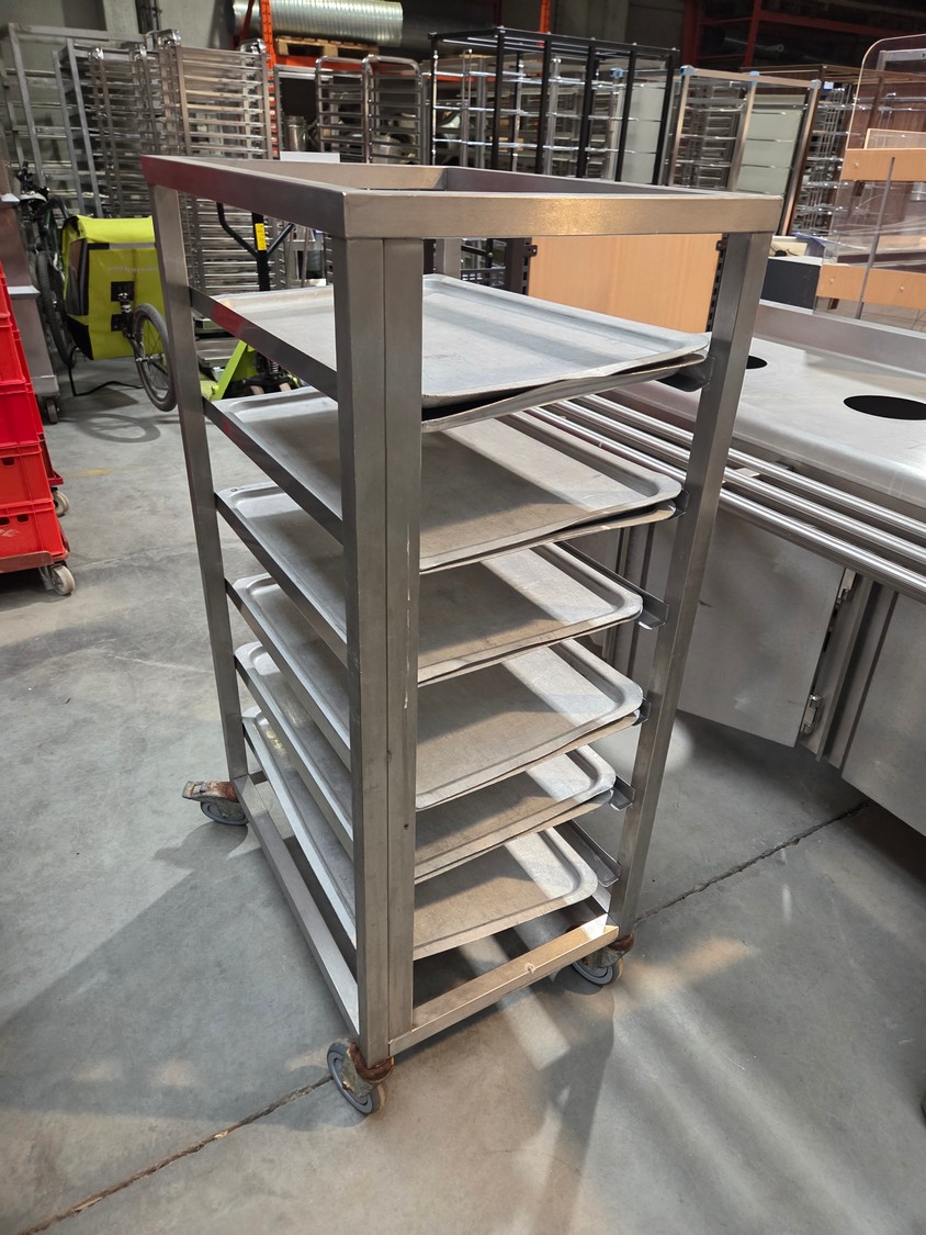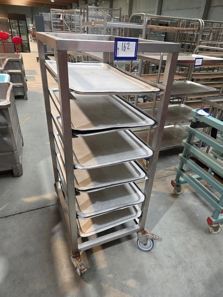 S/s trolley, 6 floors with plates, plate dimensions: 730 mm x 440 mm, total dimensions: 740 mm x 530 mm x 1340 mm.