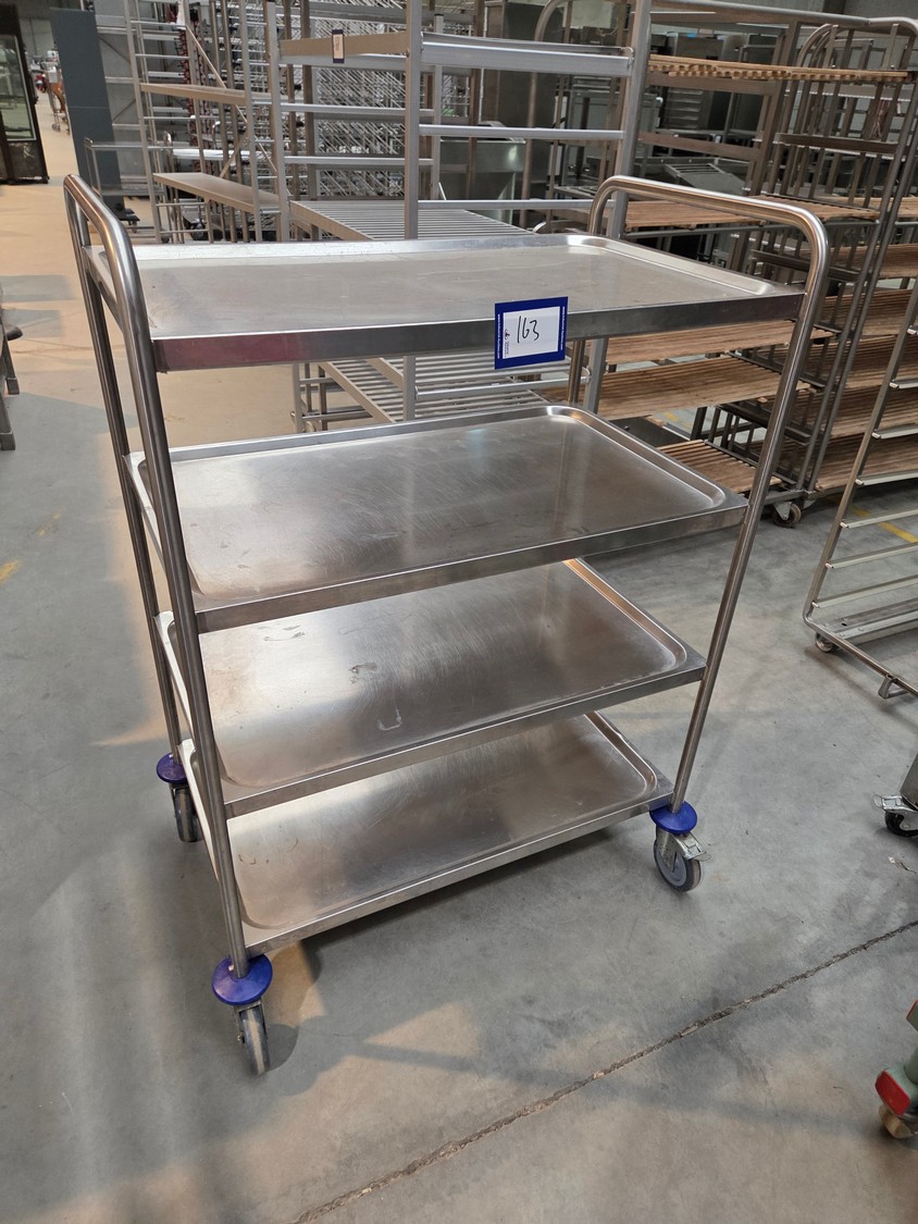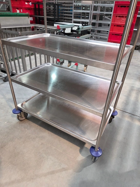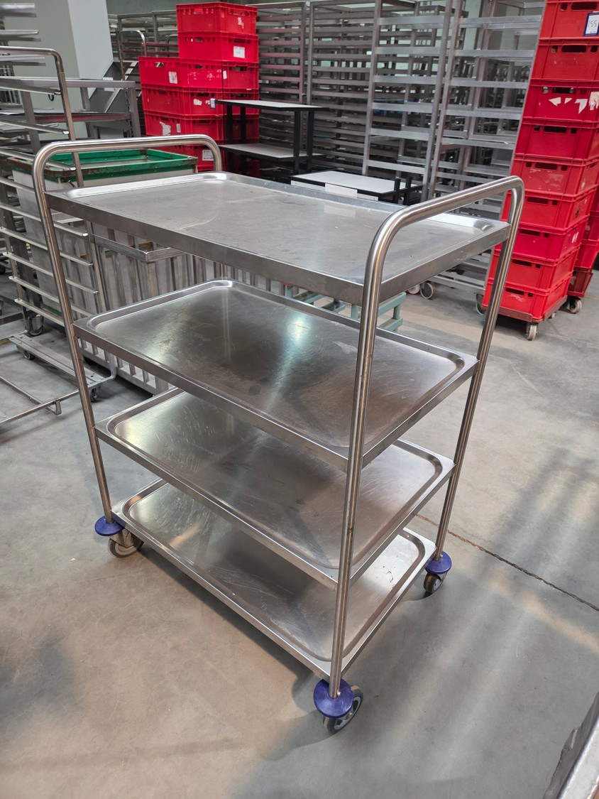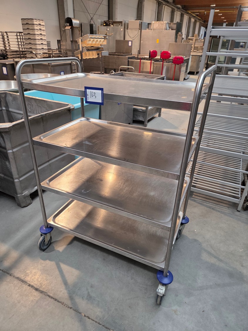 S/s trolley, 4 floors, floor dimensions: 900 mm x 550 mm, total dimensions: 930 mm x 570 mm x 1300 mm.