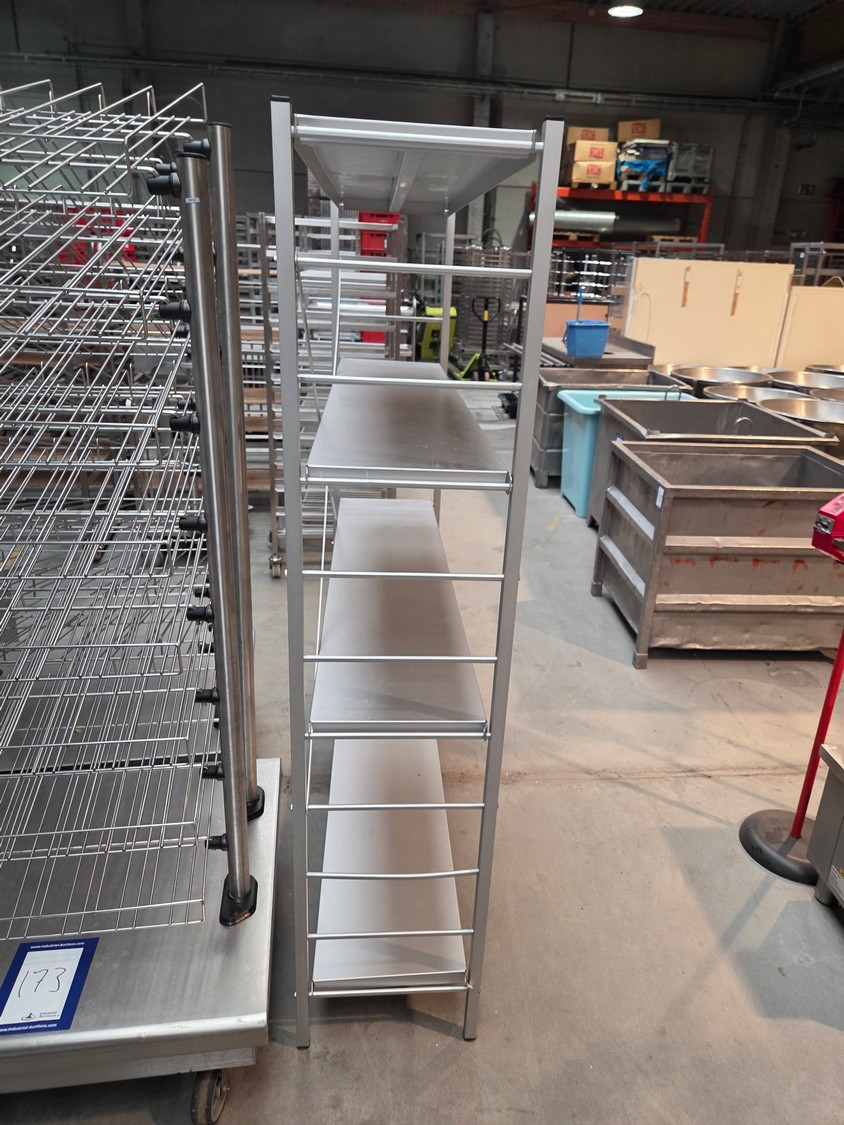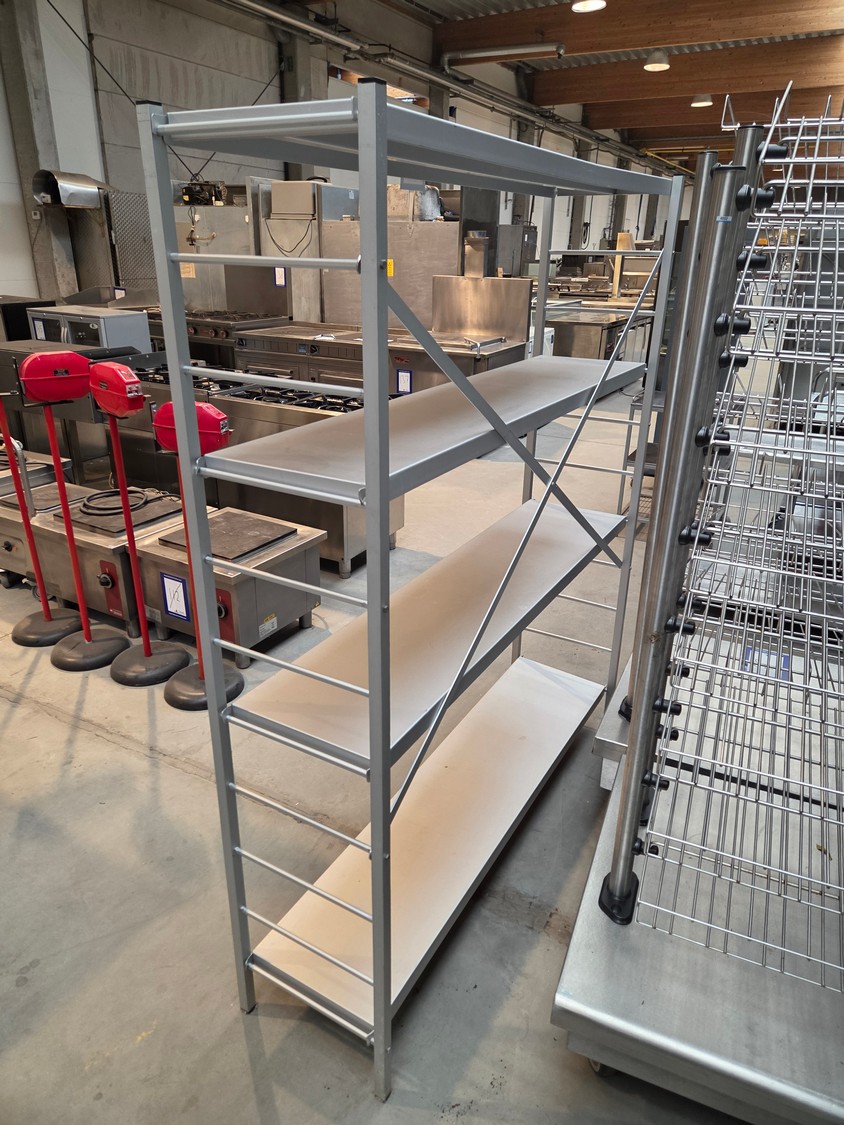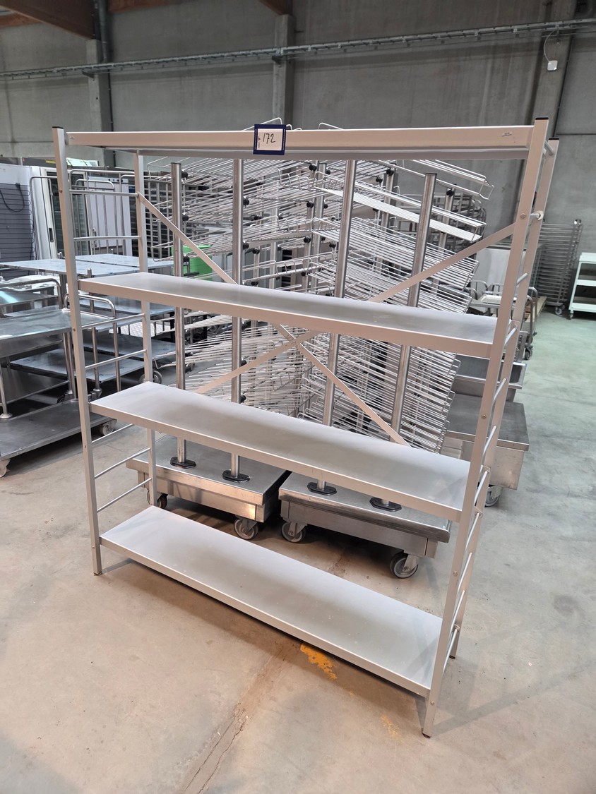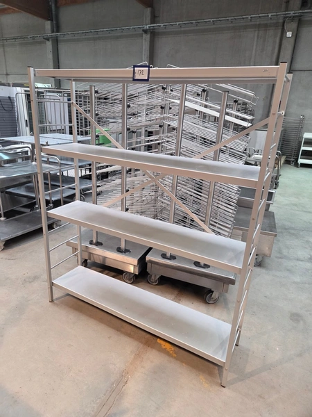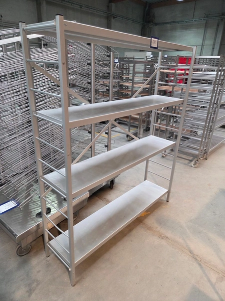 Aluminum rack, 4 floors, floor dimensions: 1450 mm x 330 mm, total dimensions: 1500 mm x 390 mm x 1780 mm.