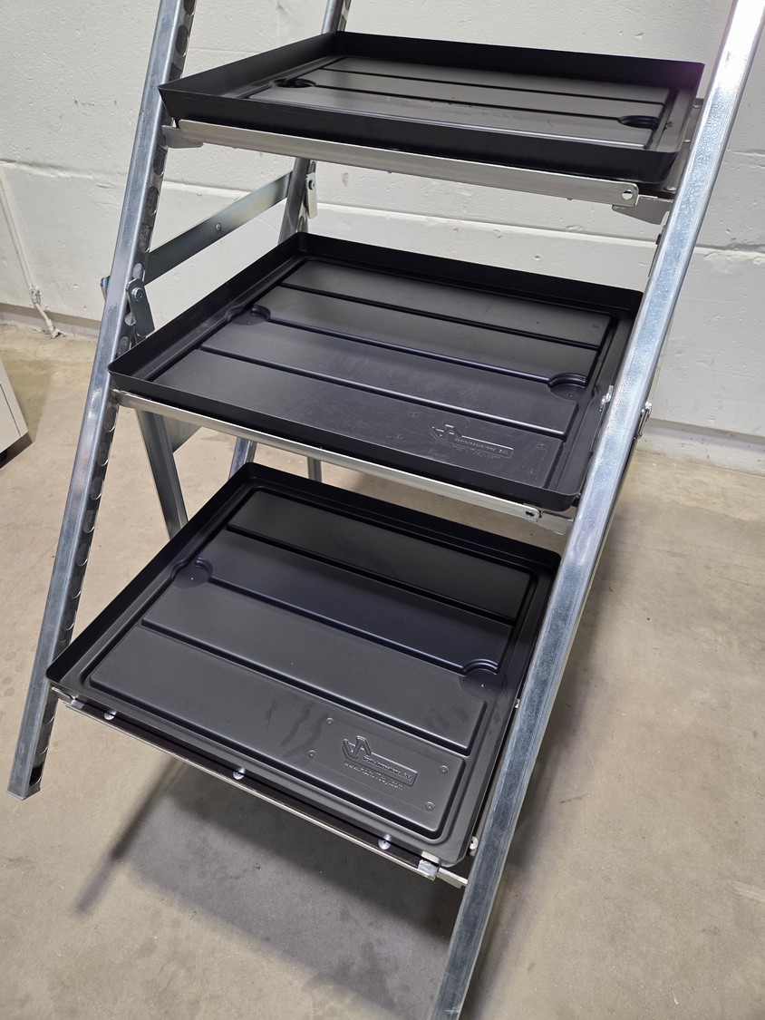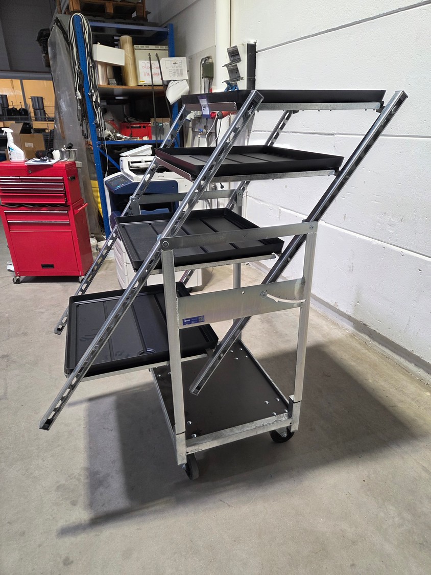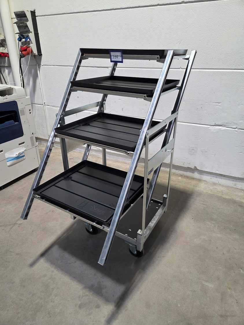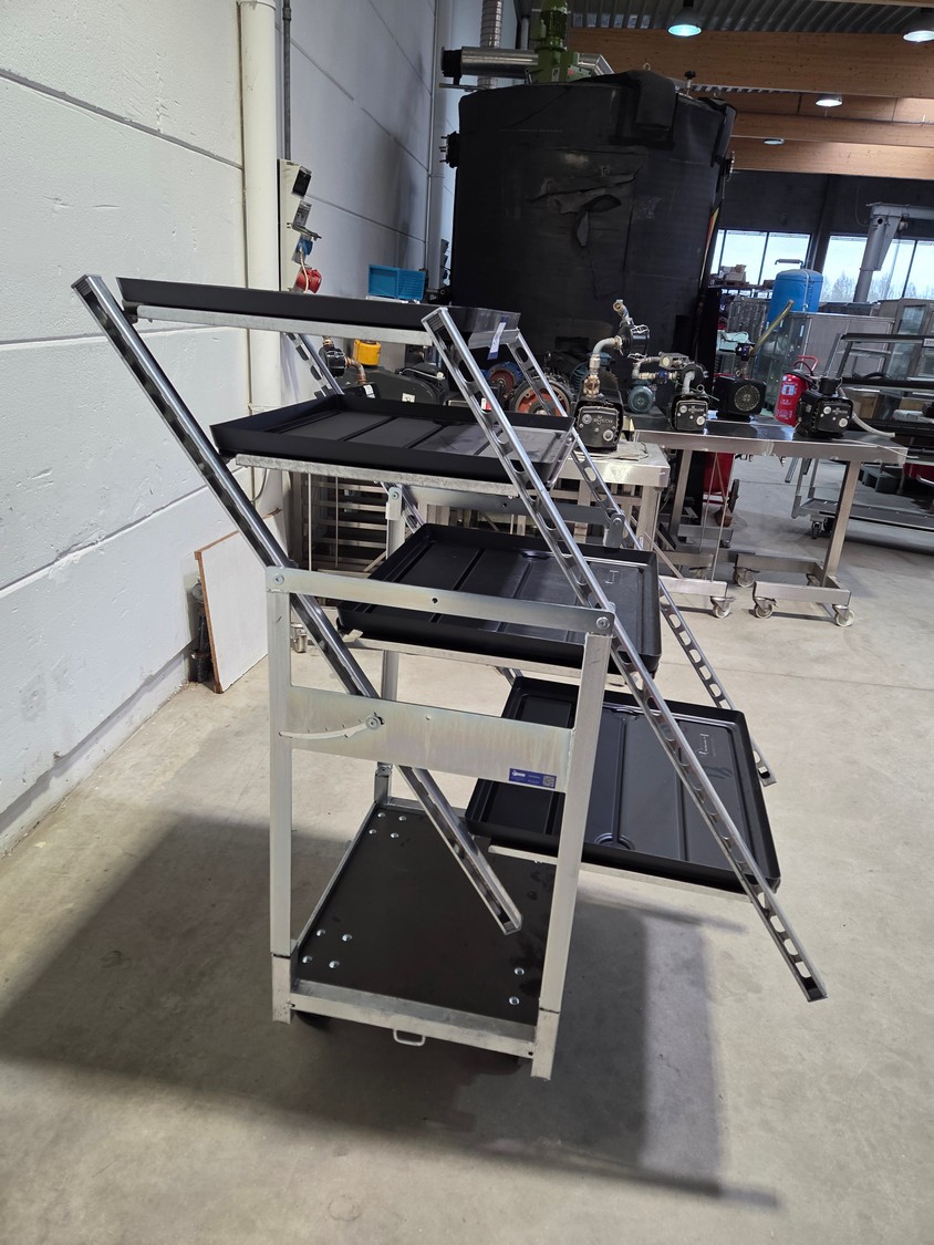 Trolley, 4 floors, floor dimensions: 630 mm x 540 mm, total dimensions: 1250 mm x 720 mm x 1530 mm.