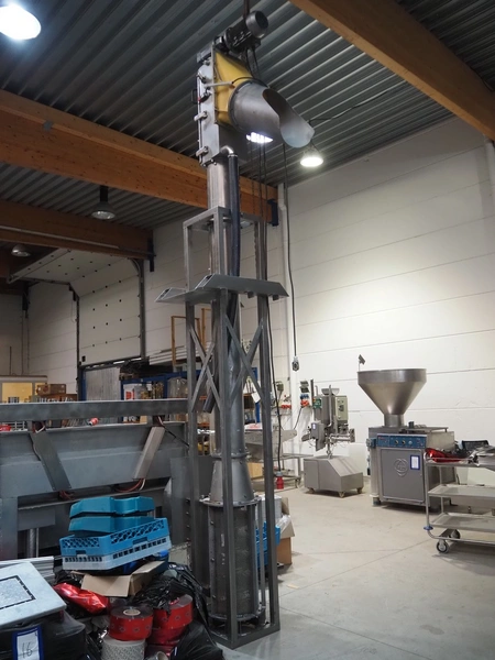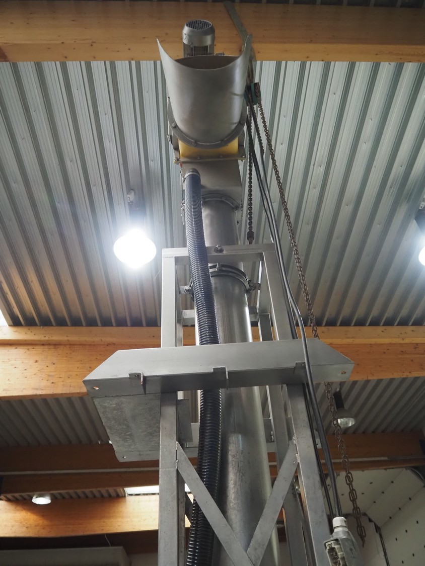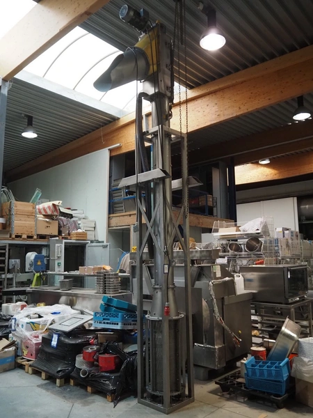 Speco vertical elevating screw, diameter screw: 300 mm, output height: 3350 mm, total dimensions: 1050 mm x 770 mm x 4600 mm.
