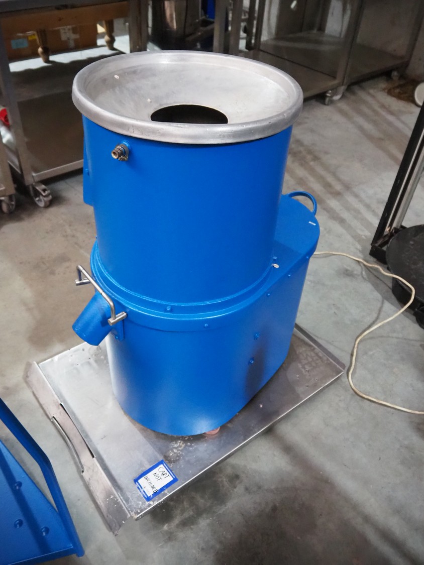 Pele Vite peeler, inside dimensions: Ø 380 mm x 280 mm, total dimensions: 800 mm x 600 mm x 920 mm.