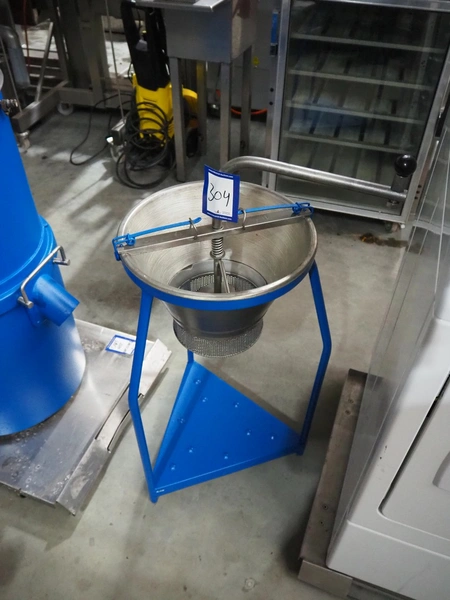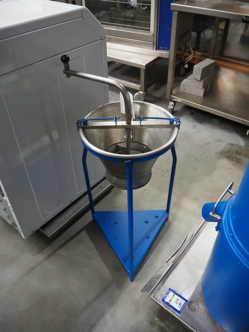 S/s manual pulper for soft products, perforations: Ø 3 mm, total dimensions: 500 mm x 500 mm x 1000 mm.