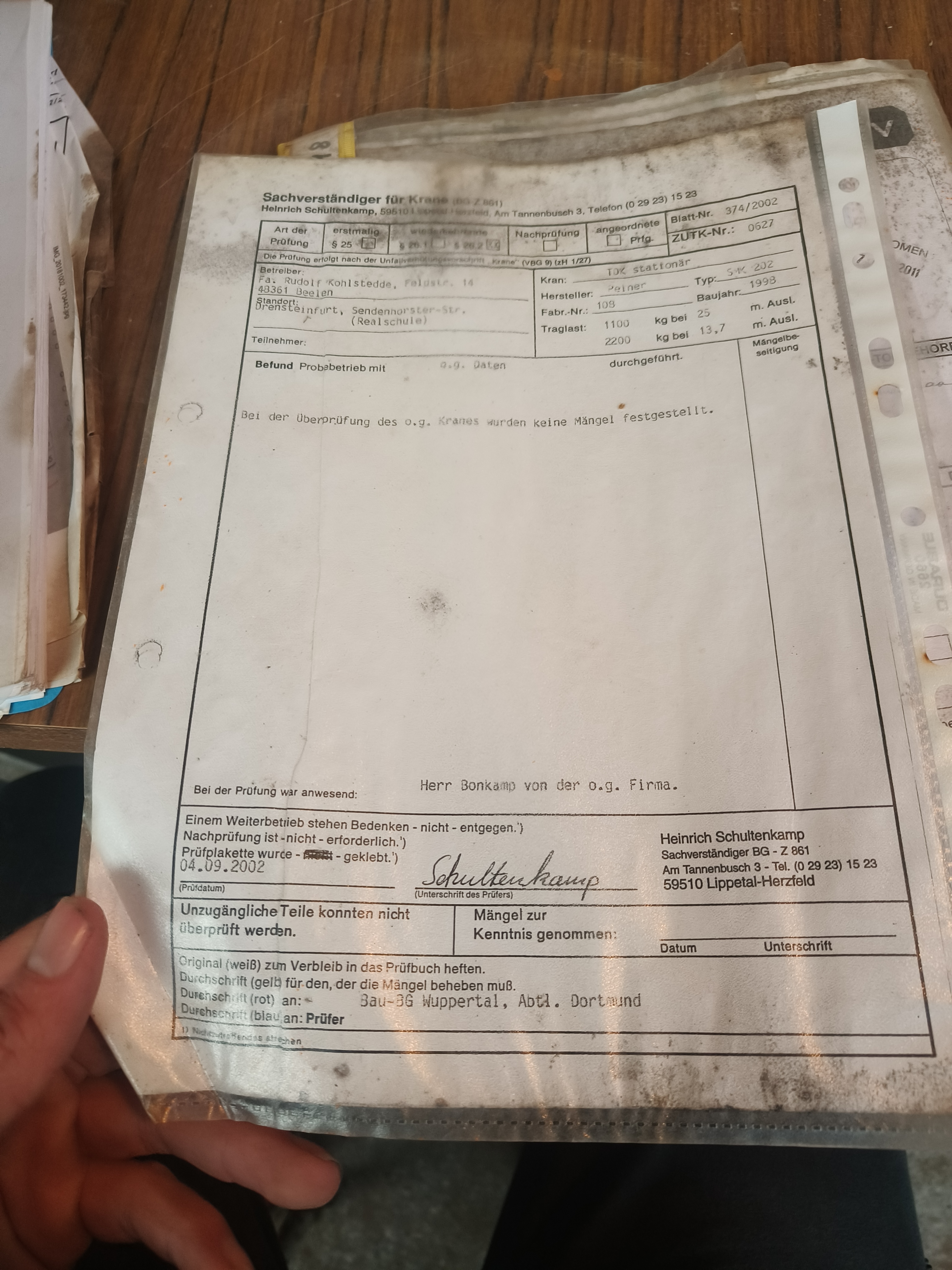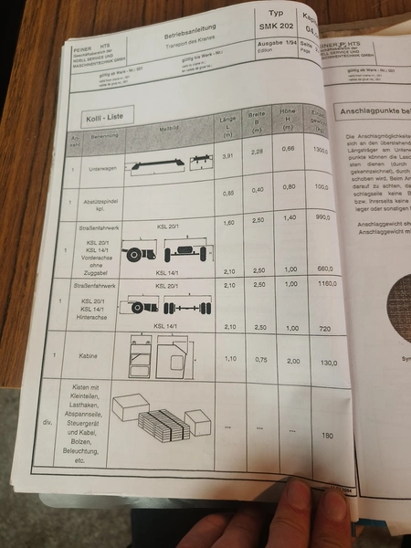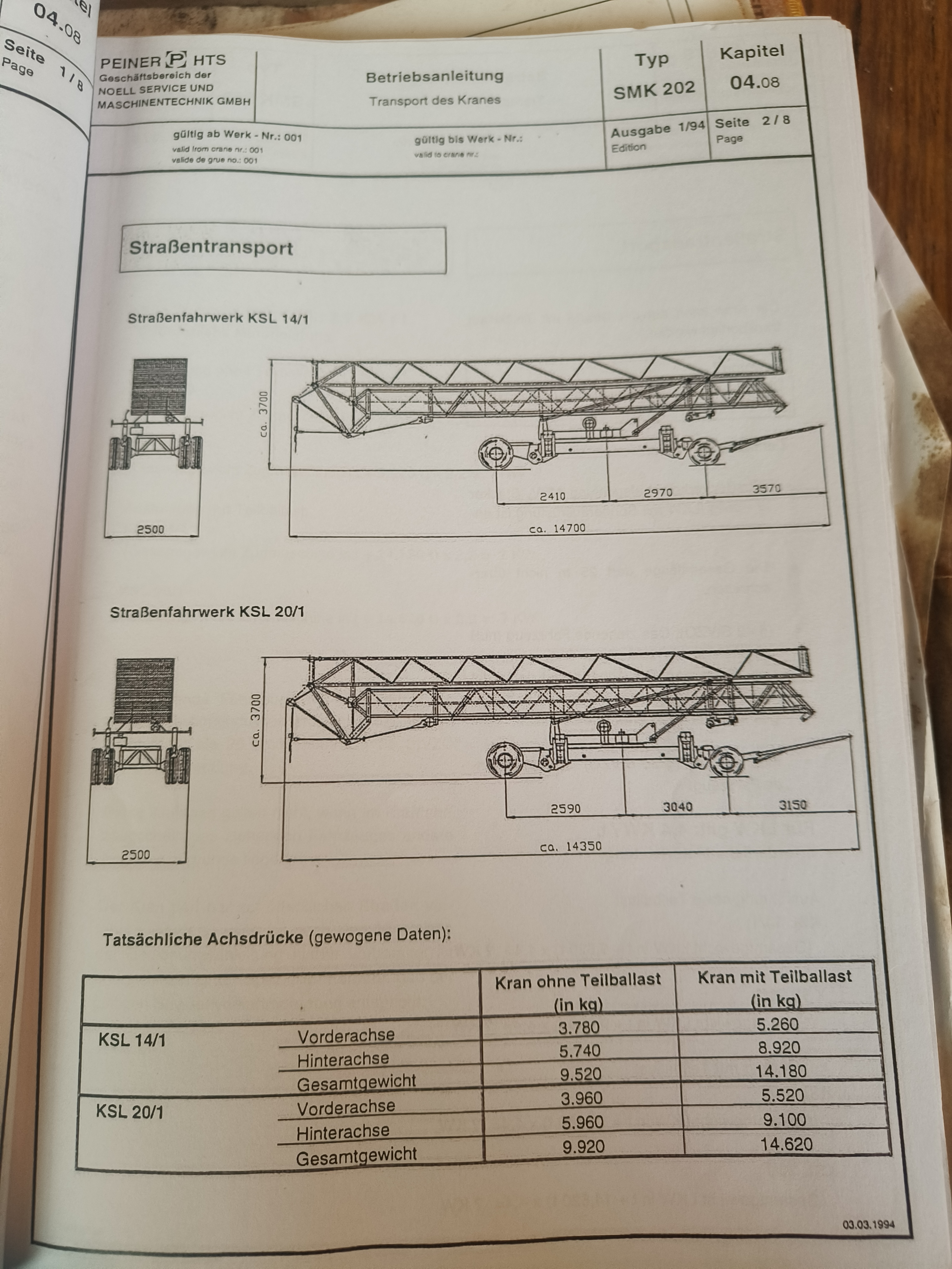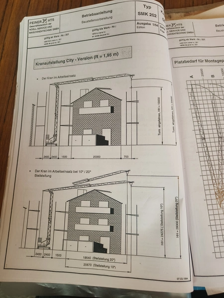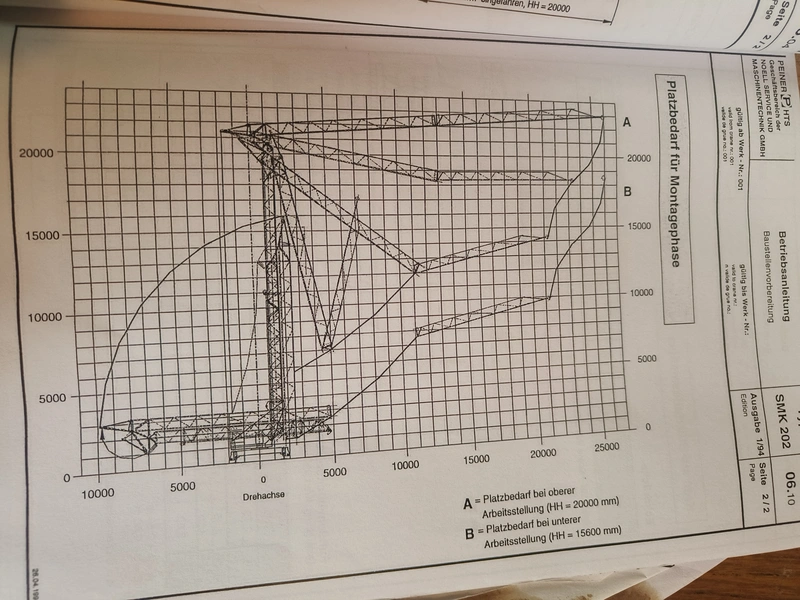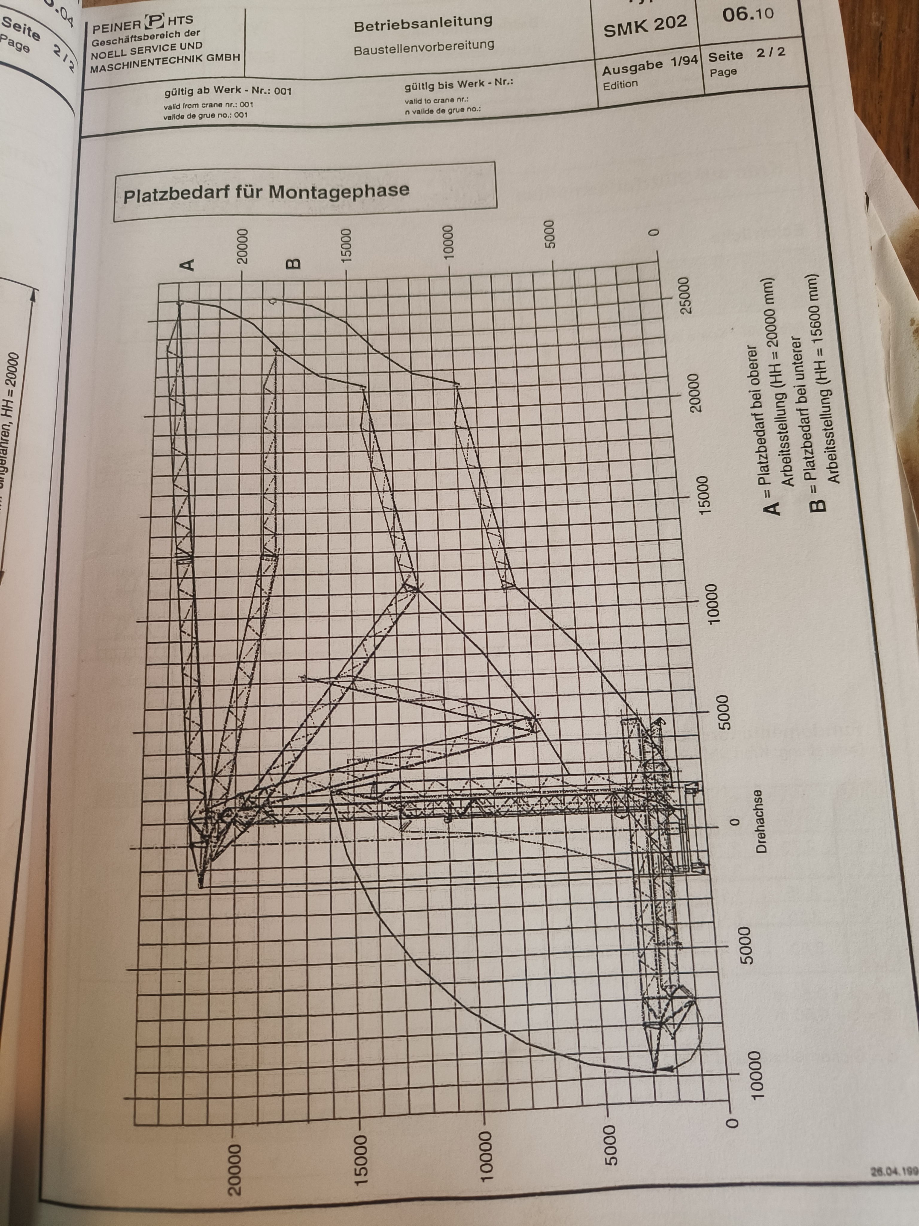 Peiner tower crane, type: SMK202, number: 108, year of construction: 1998, maximum weight: 2200 kg, maximum length: 25000 mm, lifthing height: 20000 mm, total dimensions transport: 14700 mm x 2500 mm x 3700 mm.Including extra weights: (1x) 4600 kg, (7x) 2000 kg. Lot located in Nevele (BE). Viewing and pick-up in consultation with Industrial Auctions BV.