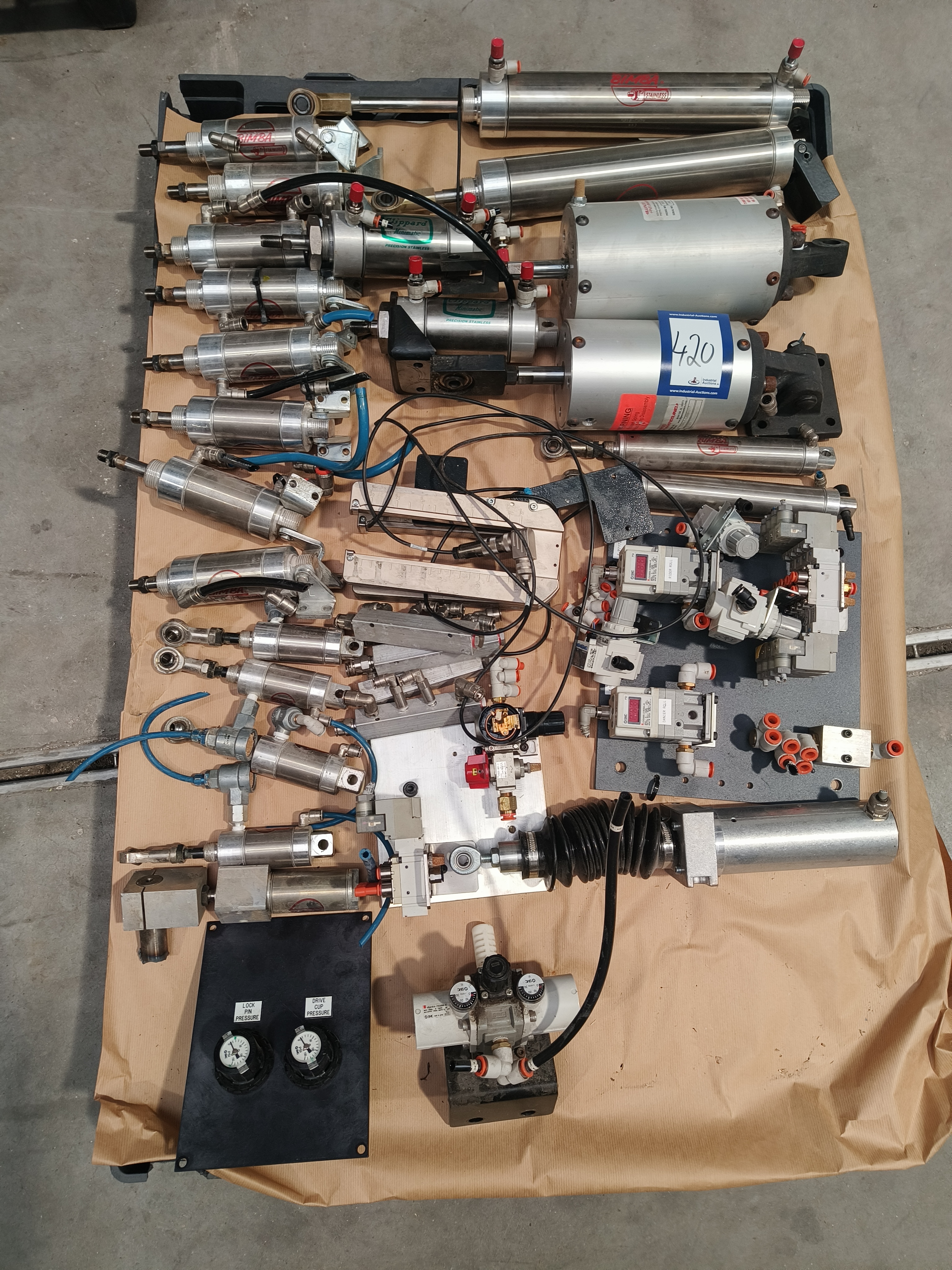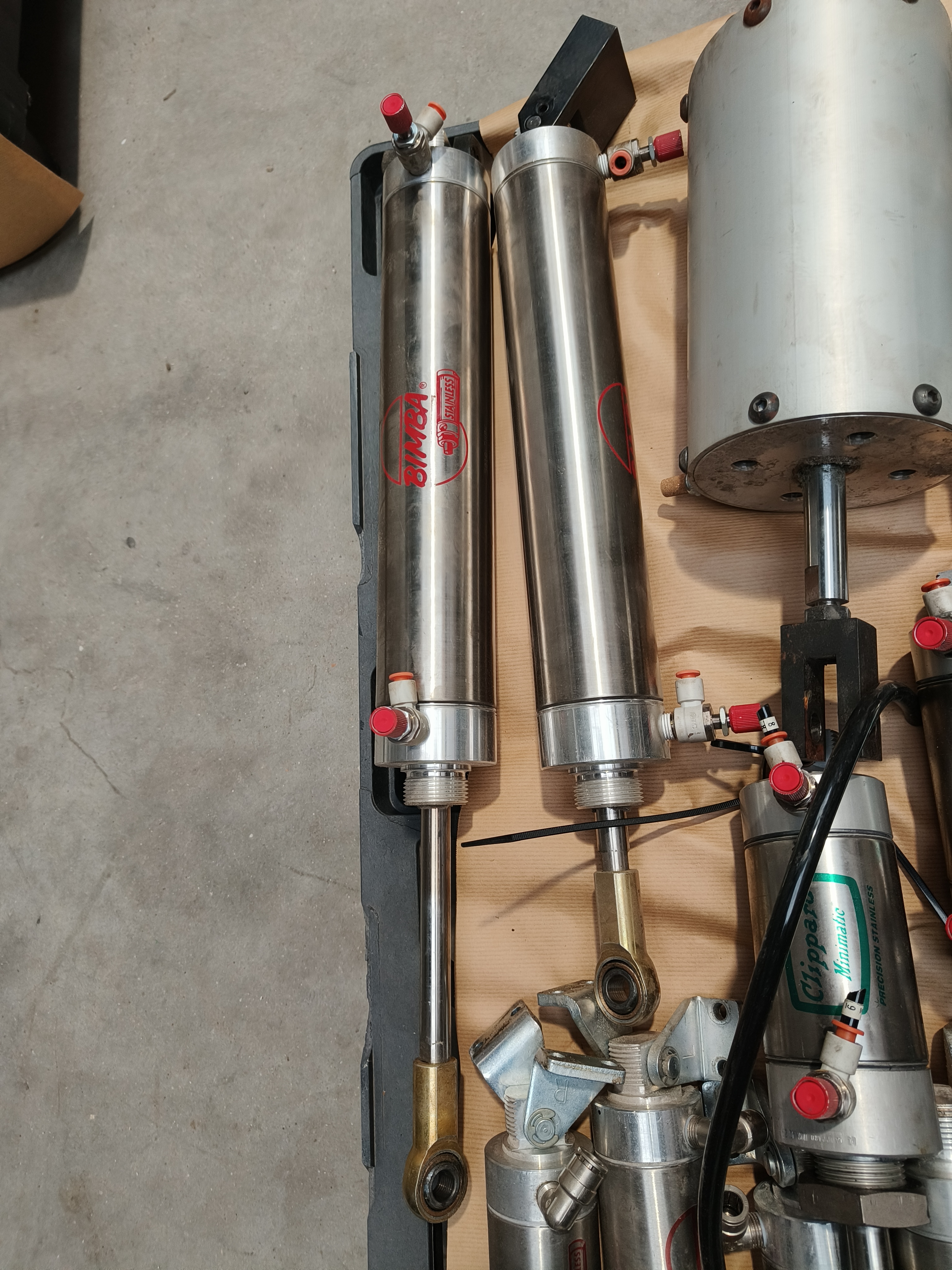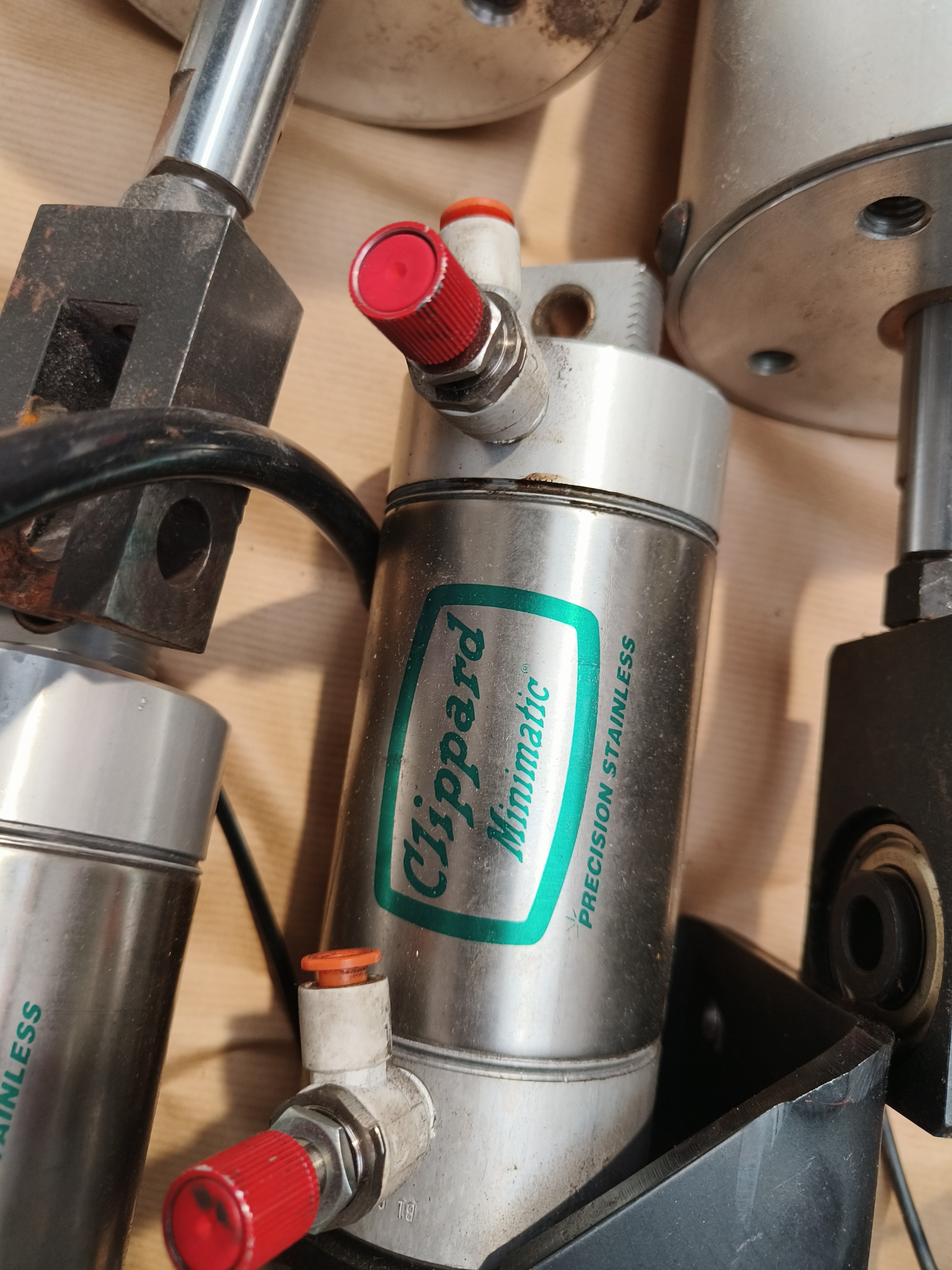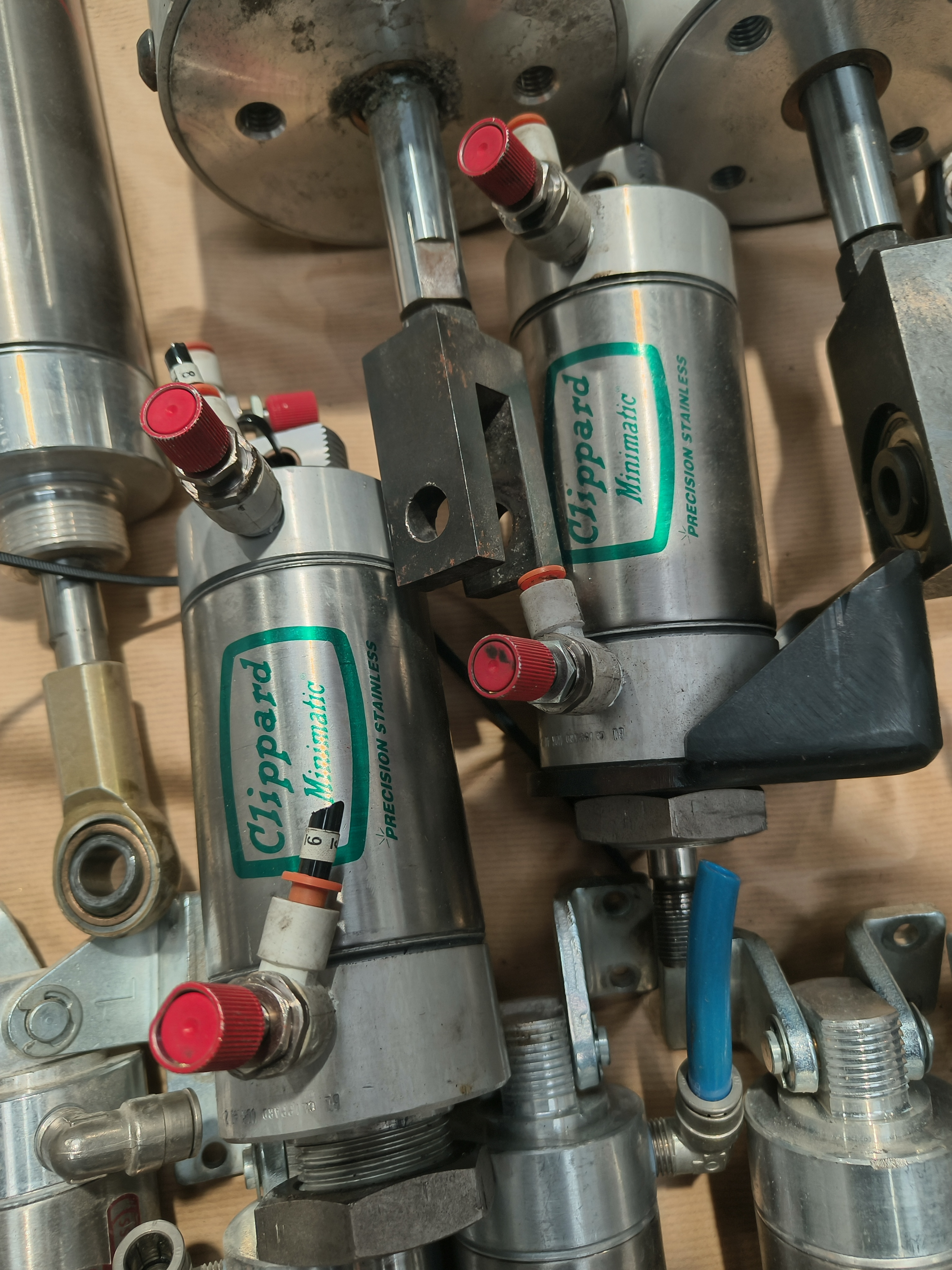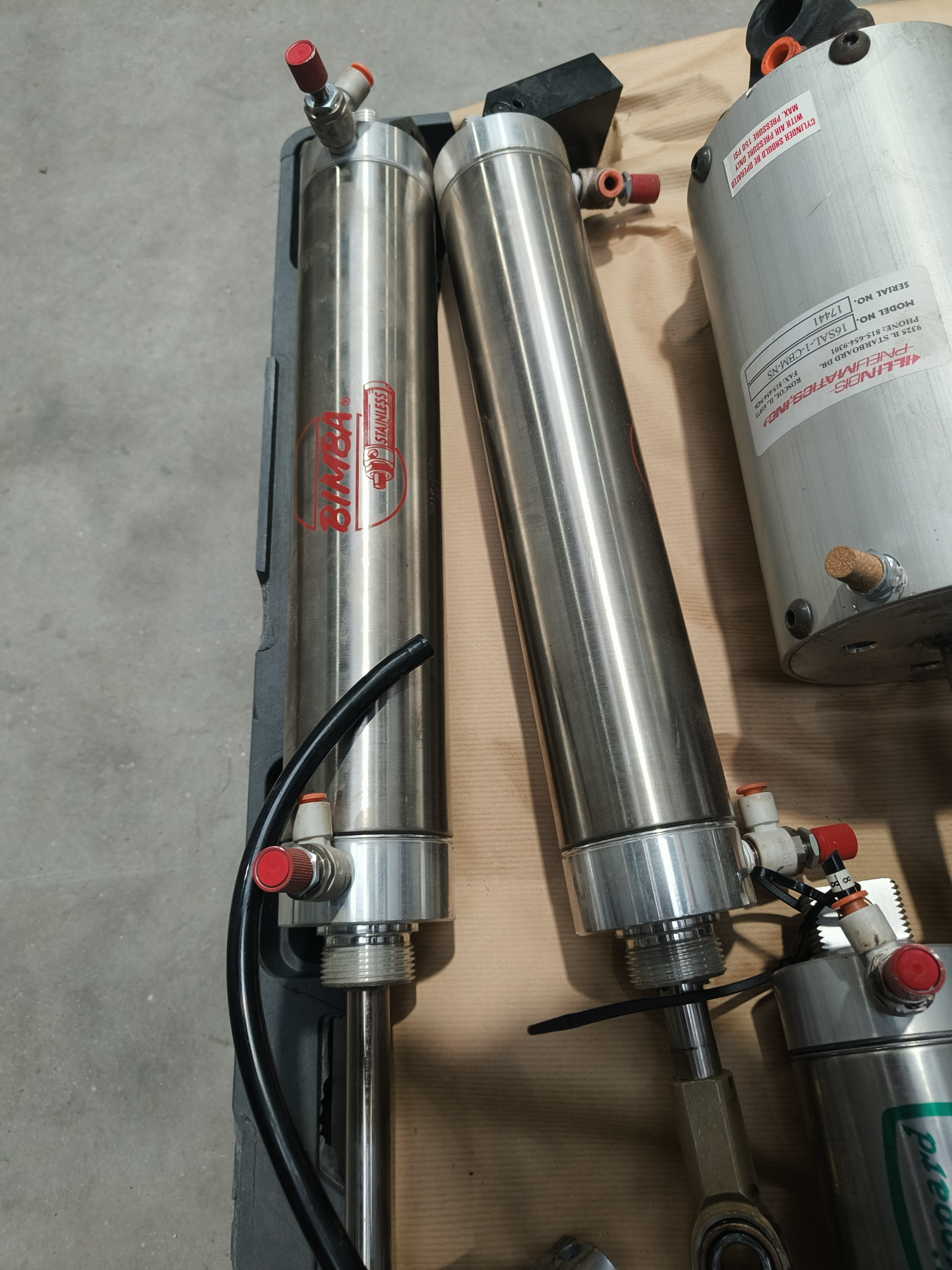 21x gas springs, 2x Illinois Pneumatics, model: 16SAL-1-CMB-NS, 2x Clippard Minimatic, 17x Bimba Stainless.