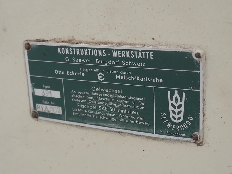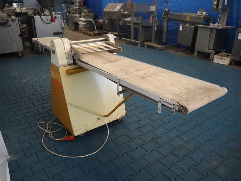 Seewer Rondo mobile dough sheeter, type: 391, number: 874002, dimensions: 3300 mm x 900 mm x 1150 mm.