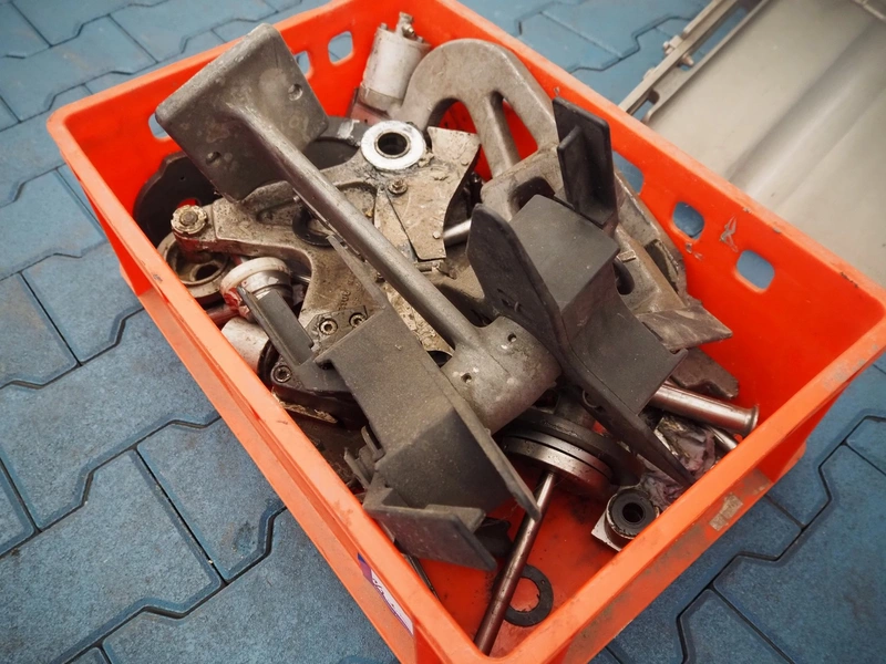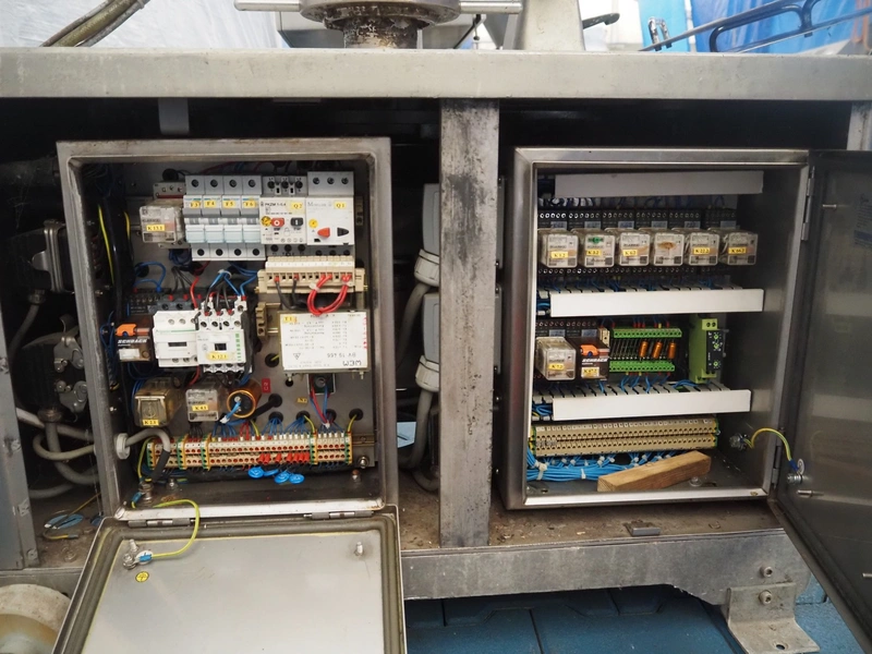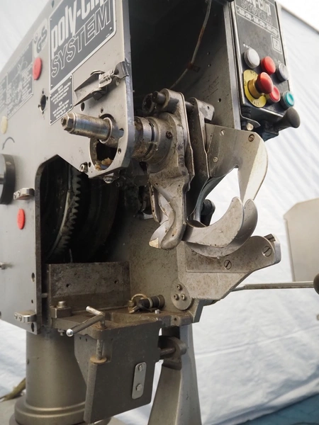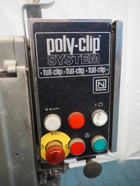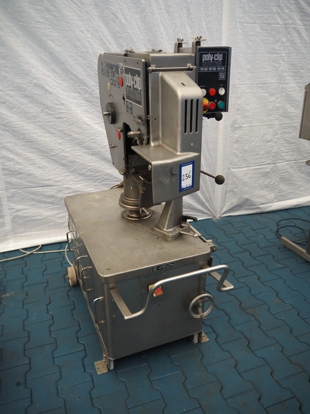 Poly-clip System GmbH & Co. KG mobile automatic double clipper, type: FCA 3401/4, number: 118409, 380 V, 50 Hz, 4 A, 5-7 bar, dimensions: 1300 mm x 1300 mm x 1950 mm. Including crate with parts. Technical condition unknown.