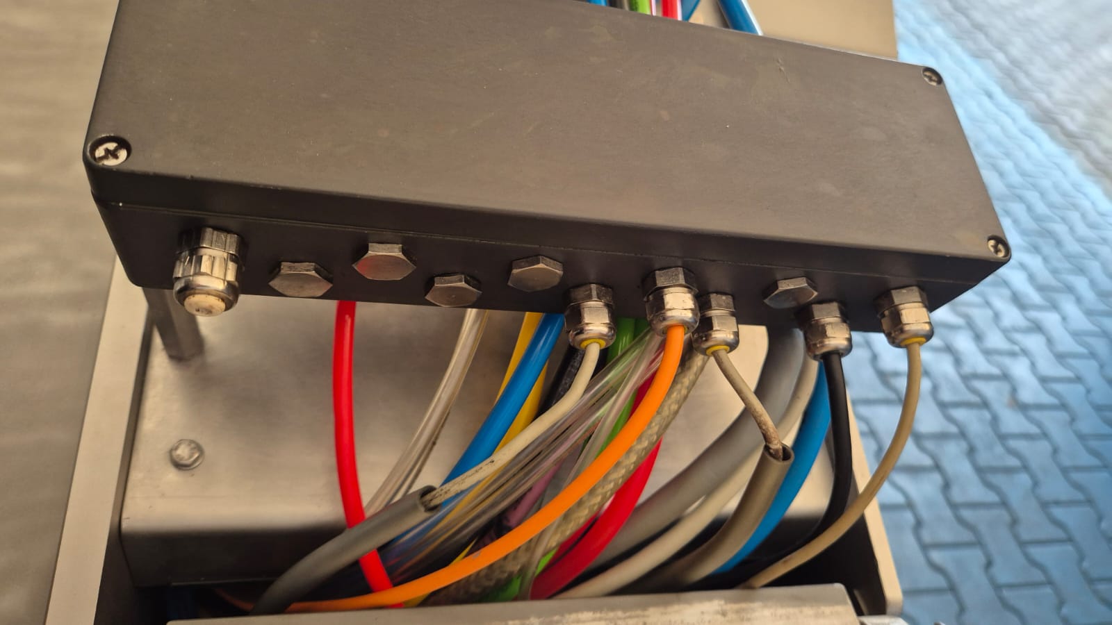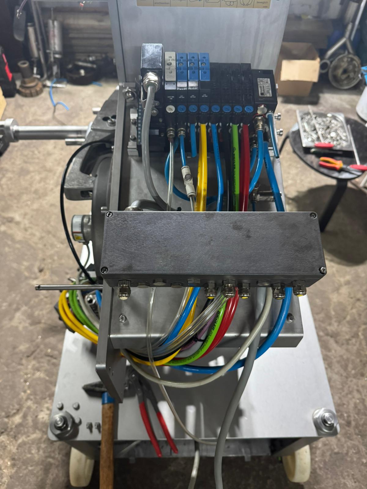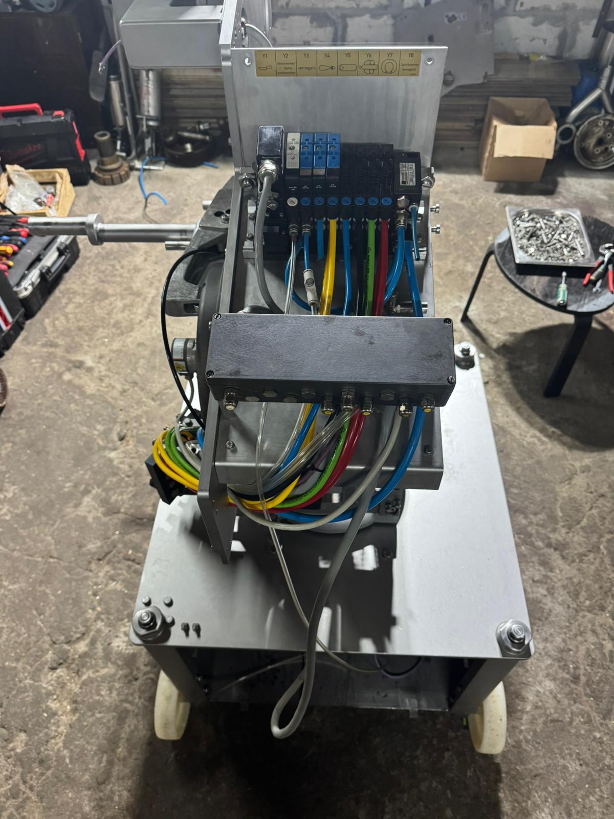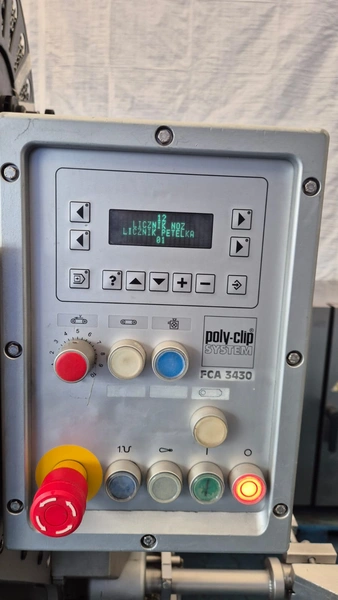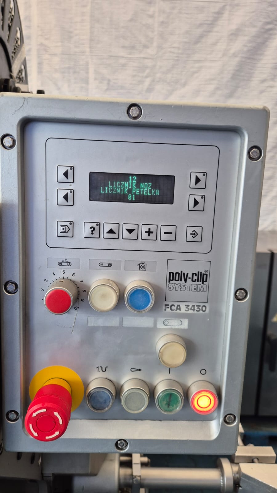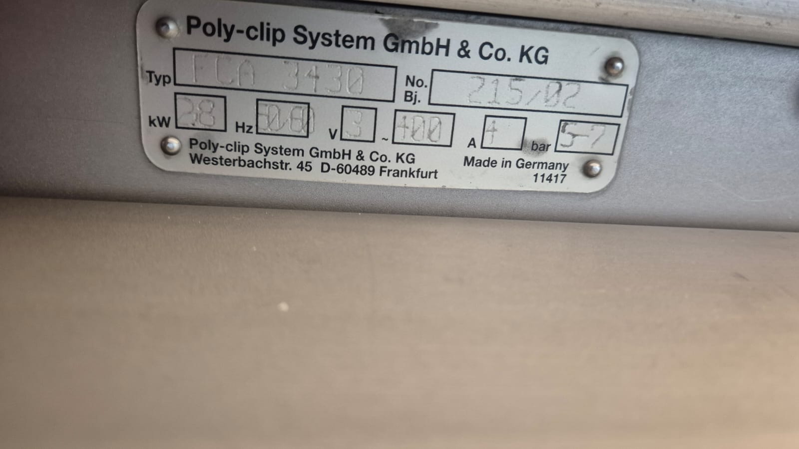 Poly-clip System GmbH & Co. KG mobile clipper, type: FCA 3430, number: 215, year of construction: 2002, 400 V, 3 Ph, 50/60 Hz, 4 A, 2.8 kW, 5-7 bar, dimensions: 1600 mm x 1450 mm x 2000 mm. Completely overhauled.