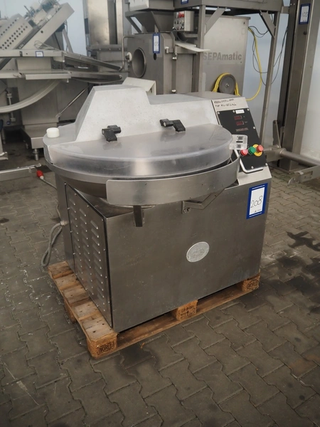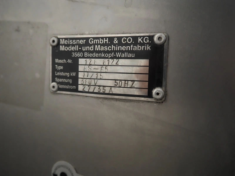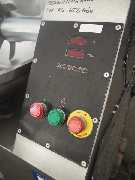 Meissner GmbH cutter, type: RS-65, machine number: 128 8122, 380 V, 50 Hz, 24/35 A, 11/15 kW, s/s bowl, volume: 65 liter, dimensions: 1200 mm x 1100 mm x 1200 mm.