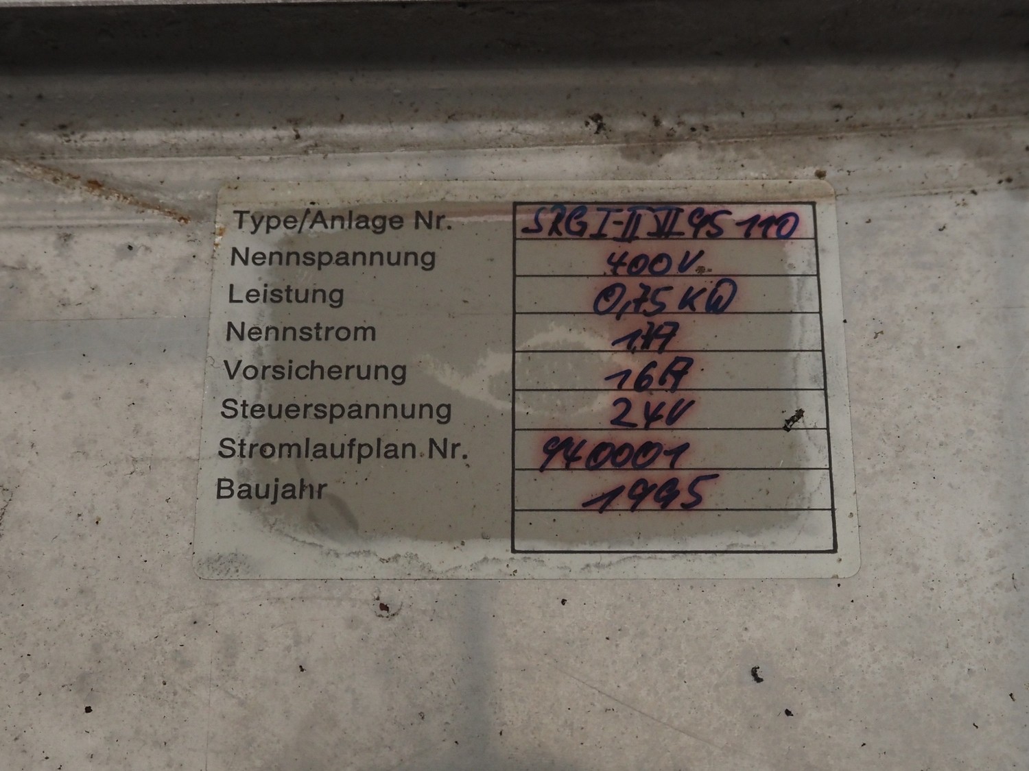 Boot cleaner, type: SRGI-IISIL95110, year of construction: 1995, 400 V, 16 A, 0.75 kW, dimensions brush: (3x) 370 mm and (2x) 180 mm, total dimensions: 1200 mm x 760 mm x 1280 mm.
