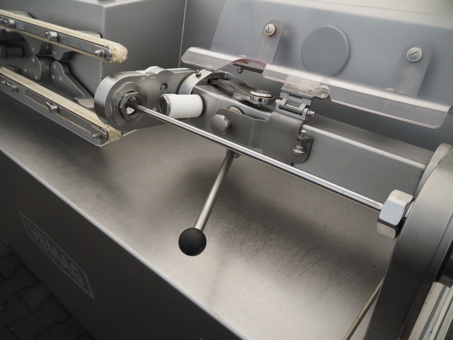 Vemag mobile flexible sausage line, model linker: FSL 210, number: 2100032, year of construction: 2011, 400/460 V, 3 Ph, 50/60 Hz, 9 A, 6.2 kW, dimensions linker: 2050 mm x 800 mm x 1250 mm, dimensions hanging line: 3500 mm x 760 mm x 1460 mm.