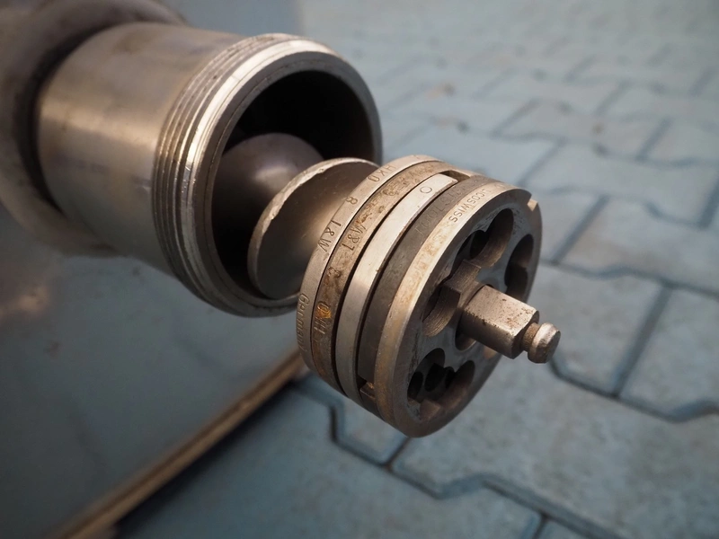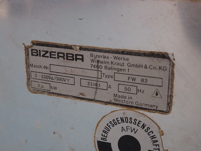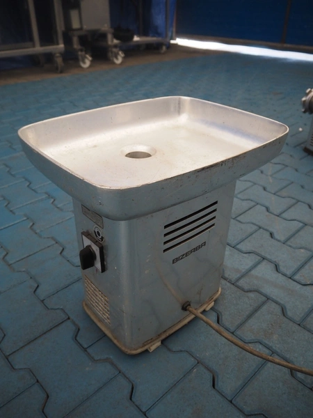 Bizerba grinder, type: FW 82, serial number: 30020, 220/380 V, 3 Ph, 50 Hz, 7.1/4.1 A, 2.3 kW, diameter plate: 80 mm, total dimensions: 460 mm x 440 mm x 470 mm.