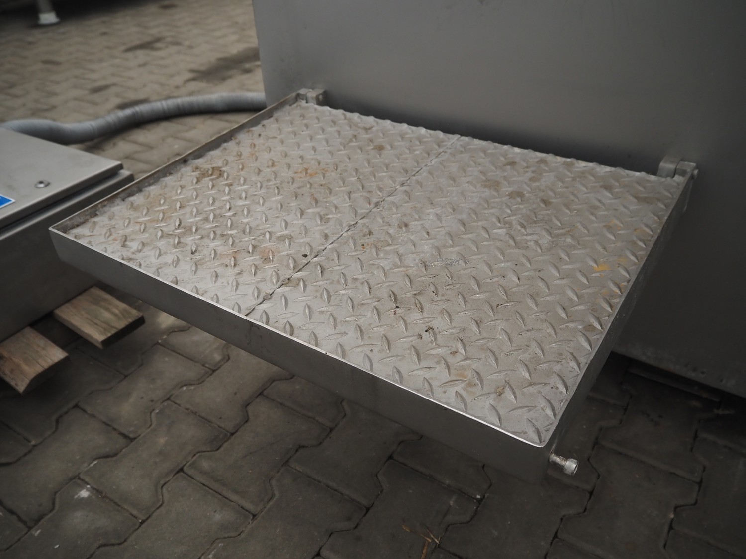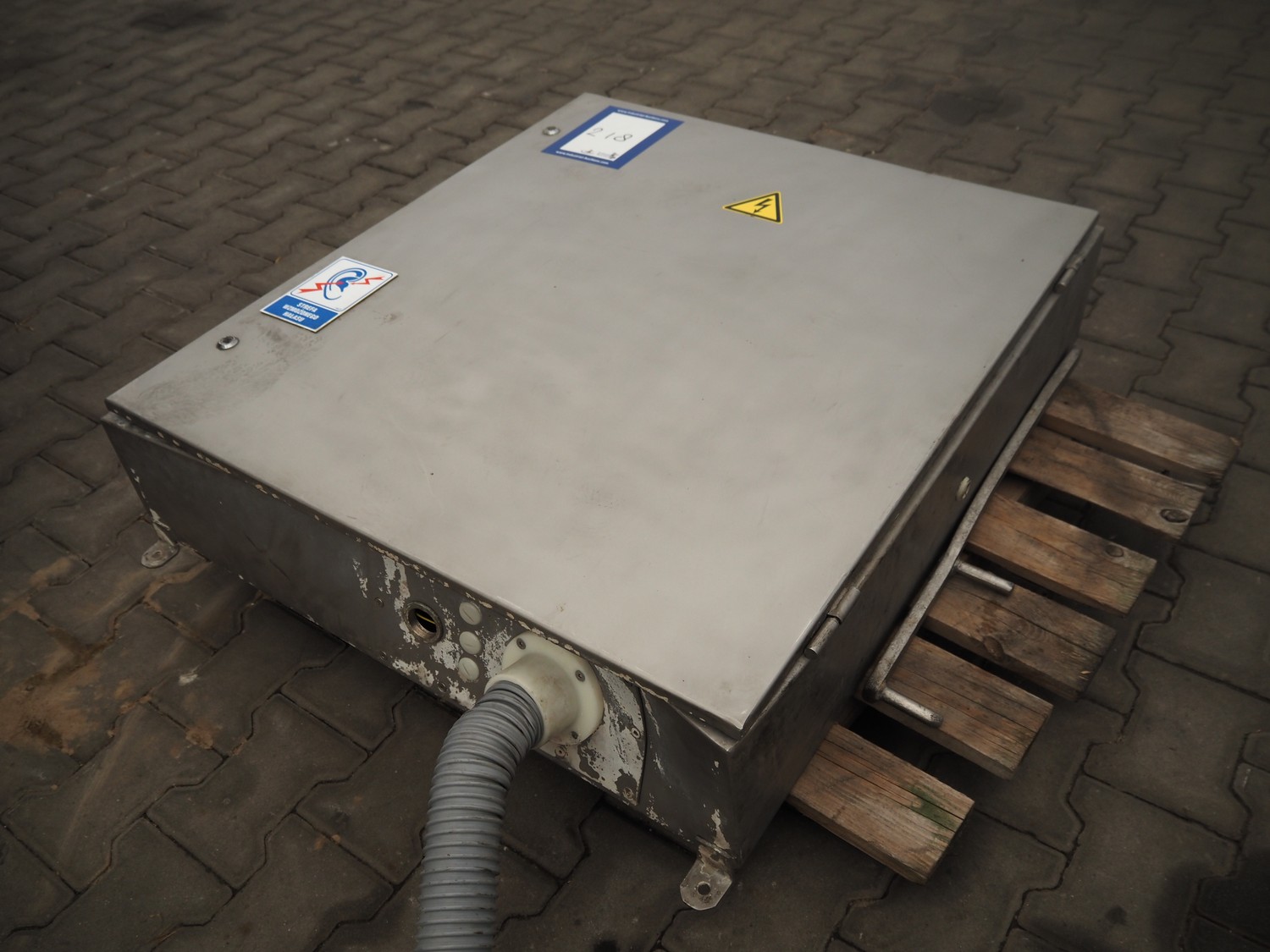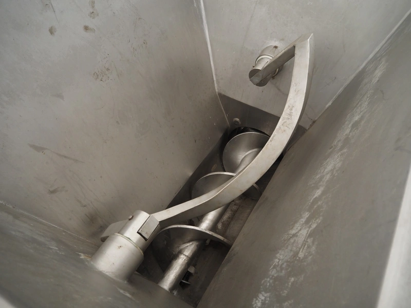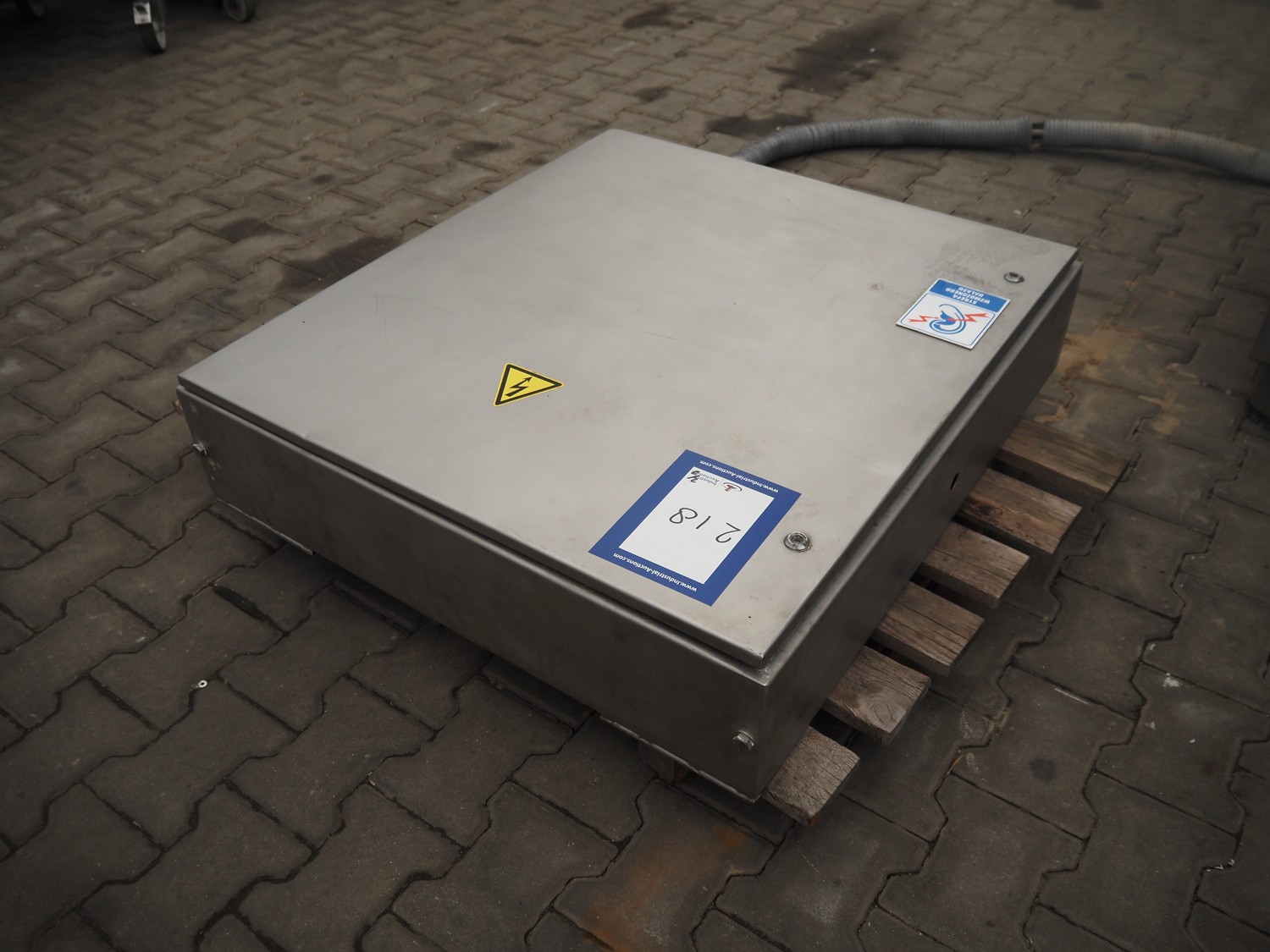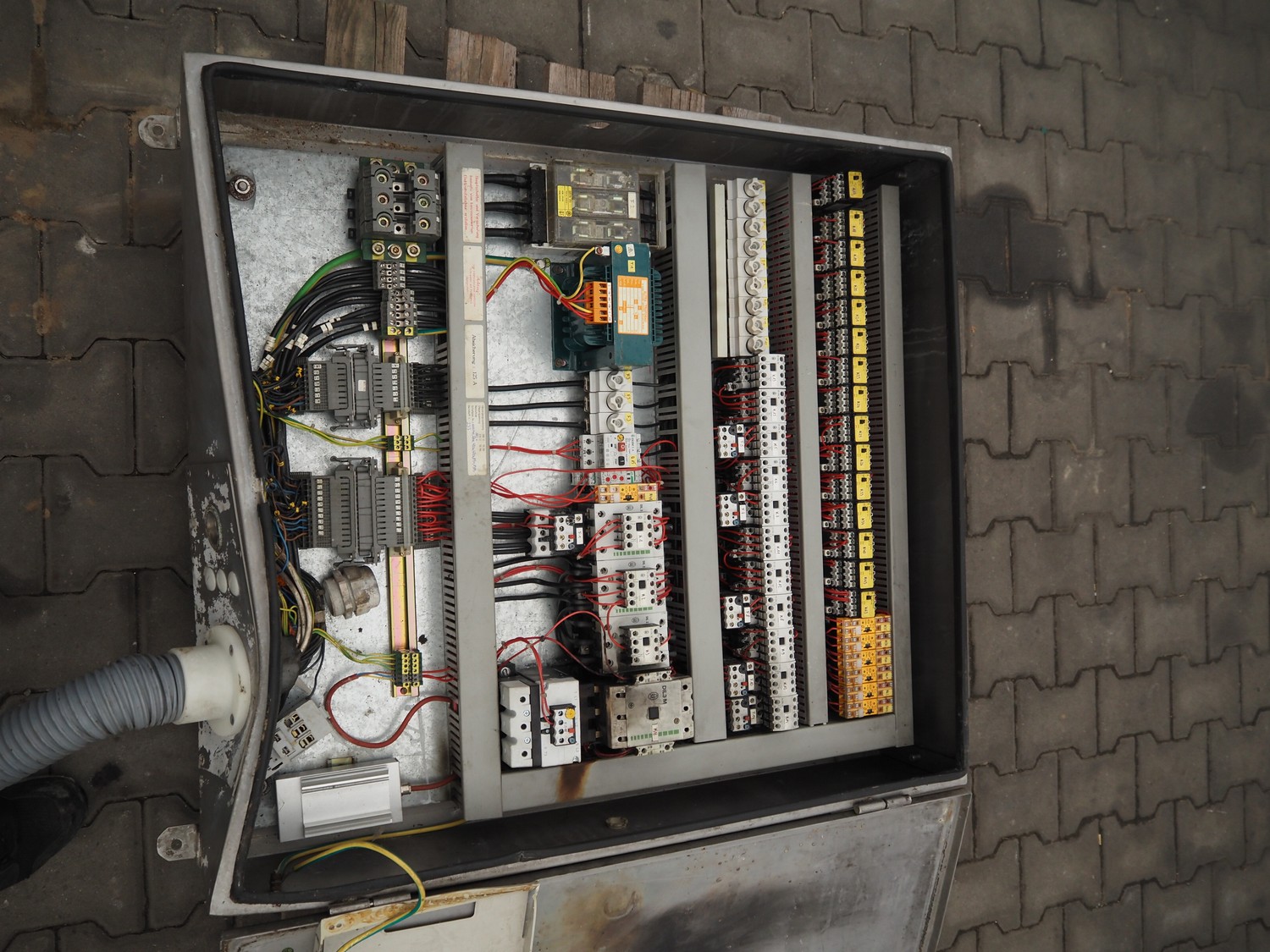 Kilia z-arm mixer-grinder with lifter for 200 liter meat bins, diameter plate: 160 mm, total dimensions: 2500 mm x 1600 mm x 2120 mm. Including s/s switch cabinet: 860 mm x 210 mm x 970 mm.