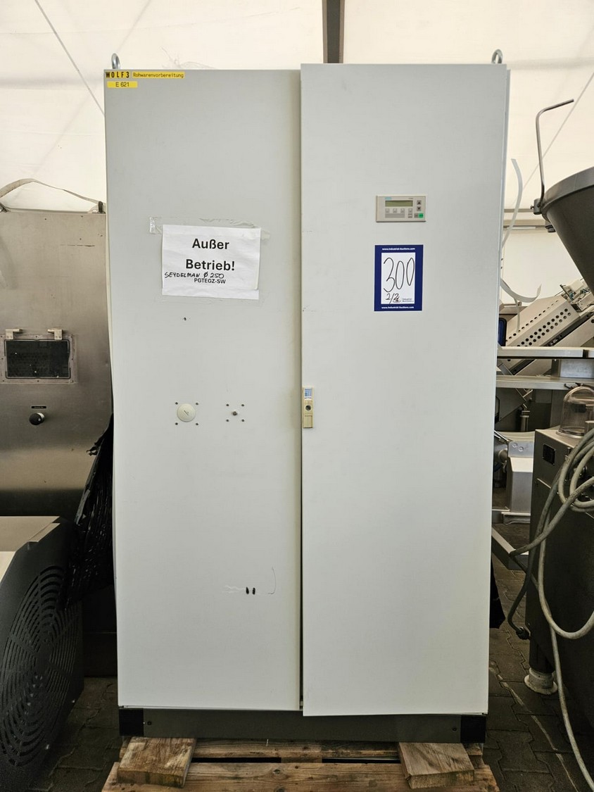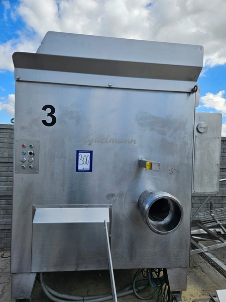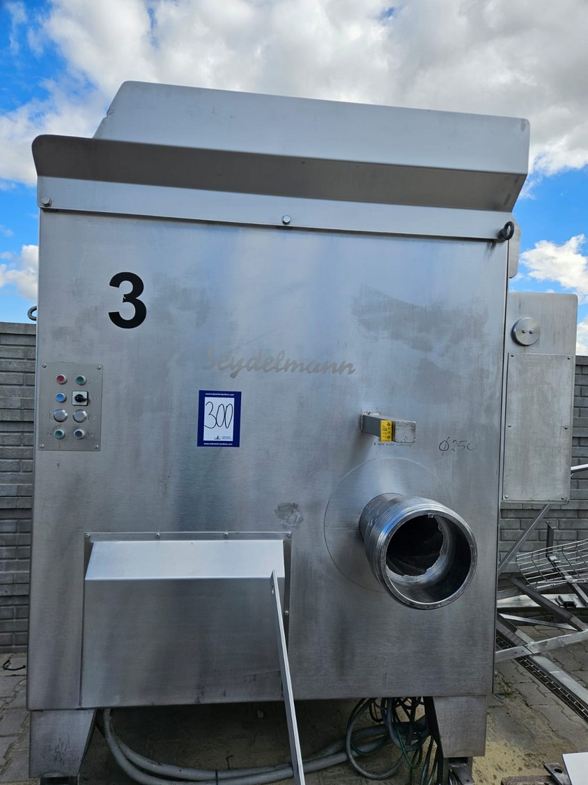 Seydelmann grinder with Lachnit lifter for meat bins, model: AV 250, machine number: 06088-1, year of construction: 2006, 400 V, 50 Hz, 147 A, 82 kW, plate diameter: 250 mm, total dimensions grinder: 2000 mm x 1650 mm x 2500 mm, type Lachnit: 300 S, serial number: 2149, year of construction: 2006, 400 V, 50 Hz, 3.75 A, 1.5 kW, weight: 900 kg, capacity: 400 kg, dimensions lifter: 1550 mm x 500 mm x 3550 mm, dimensions switch cabinet: 1200 mm x 550 mm x 2150 mm.