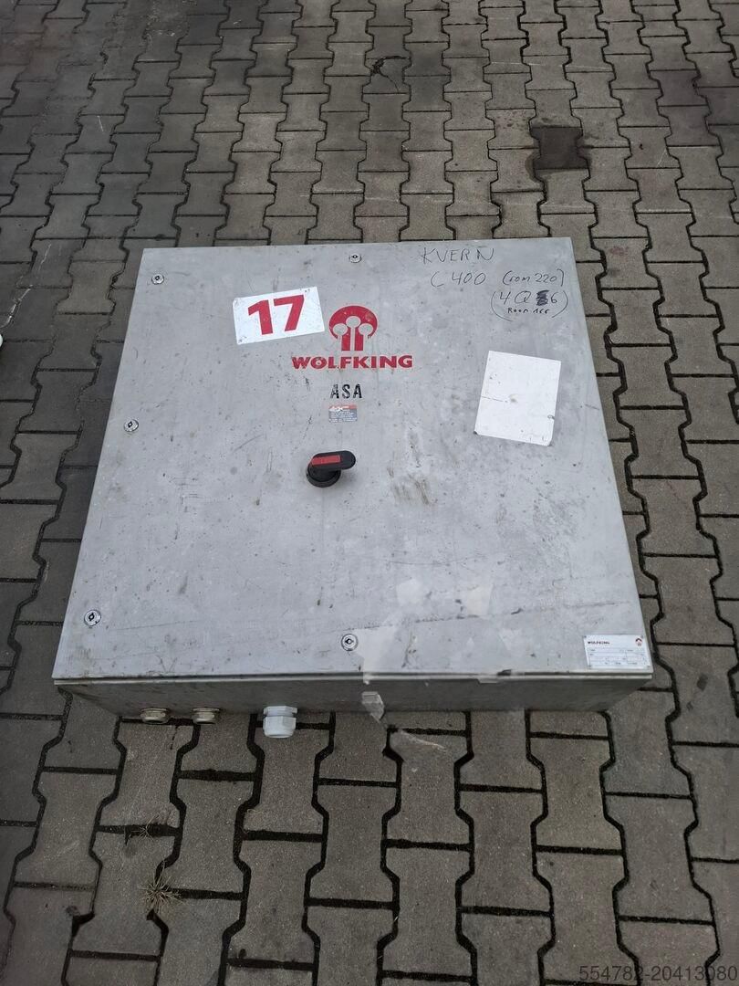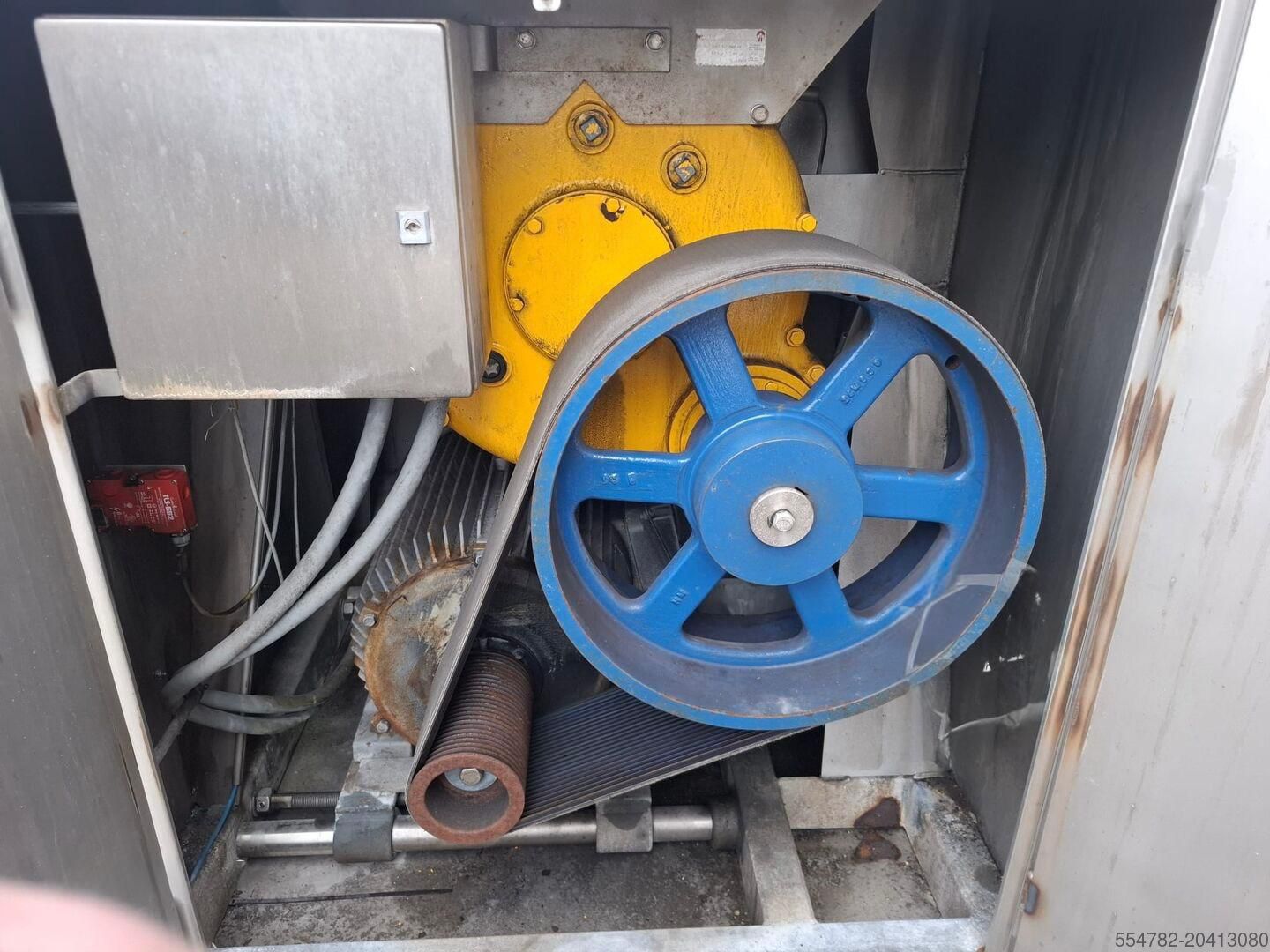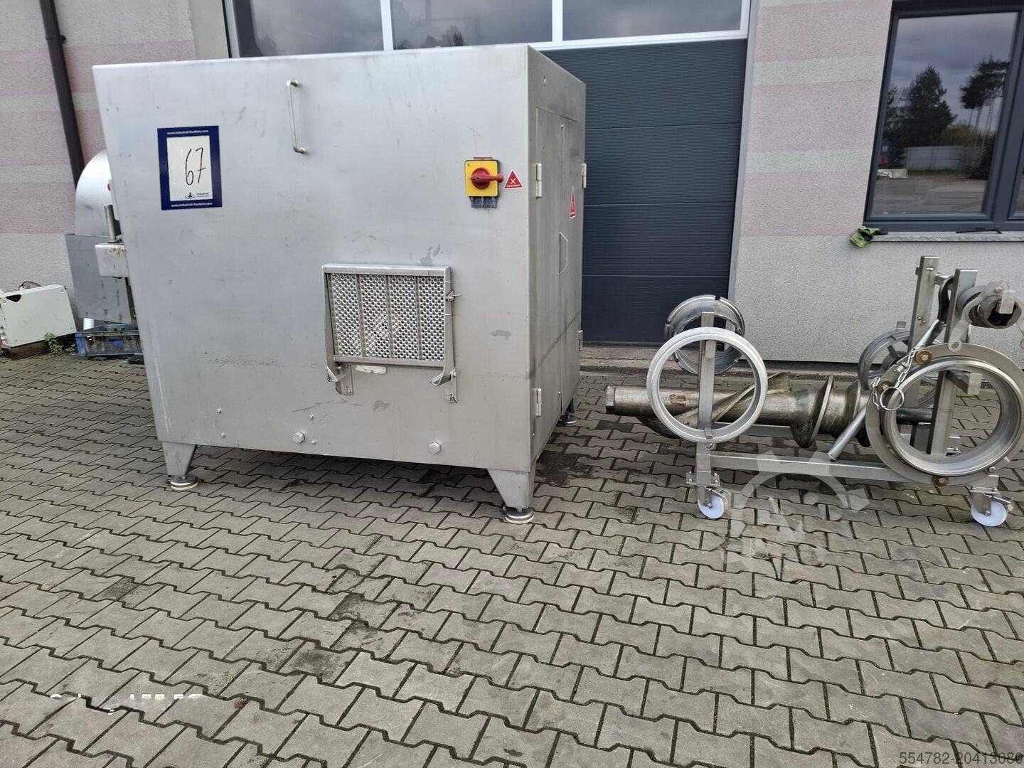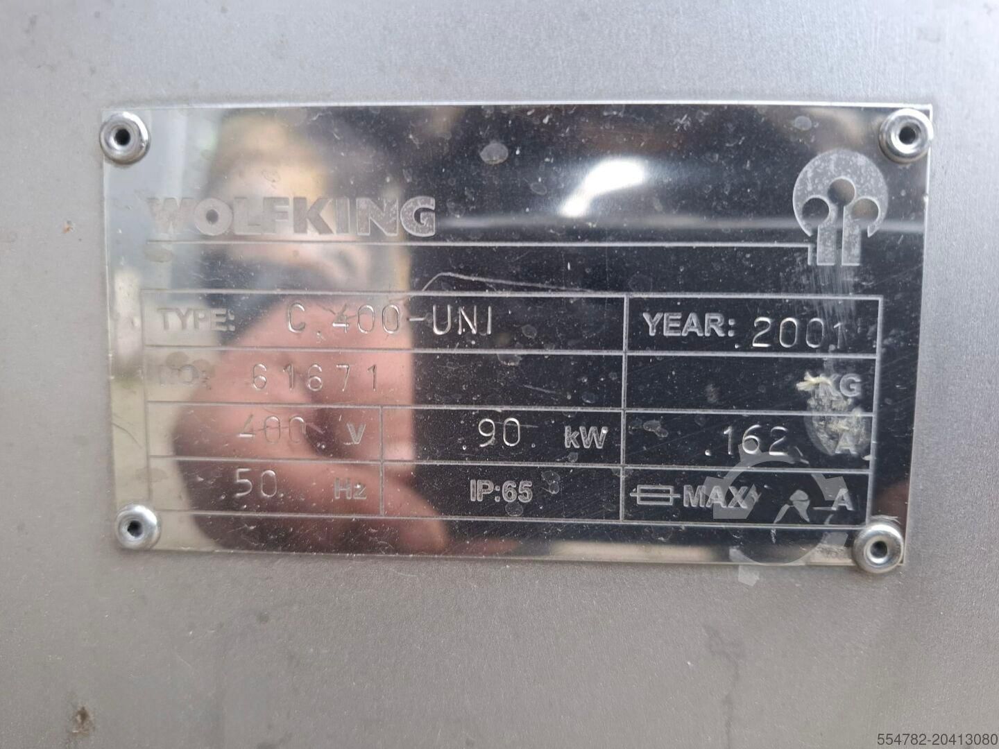 Wolfking frozen meat grinder, type: C 400-Uni, number: 61671, year of construction: 2001, 400 V, 50 Hz, 162 A, 90 kW, diameter plate: 400 mm, total dimensions: 2500 mm x 2900 mm x 1600 mm. With Carnitech lifter for meat bins, type: L25, number: 3882, year of construction: 1986, 220 V, 3 Ph, 3.1 A.