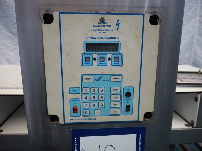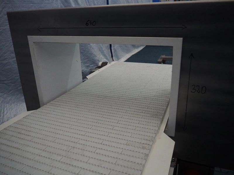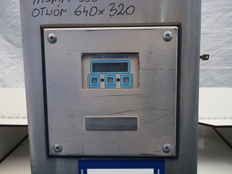 Cintex mobile metal detector, model: Auto 2, serial number: 15776, 220 V, plastic belt, belt width: 600 mm, clearance: 640 mm x 320 mm, total dimensions: 1800 mm x 1200 mm x 1450 mm.